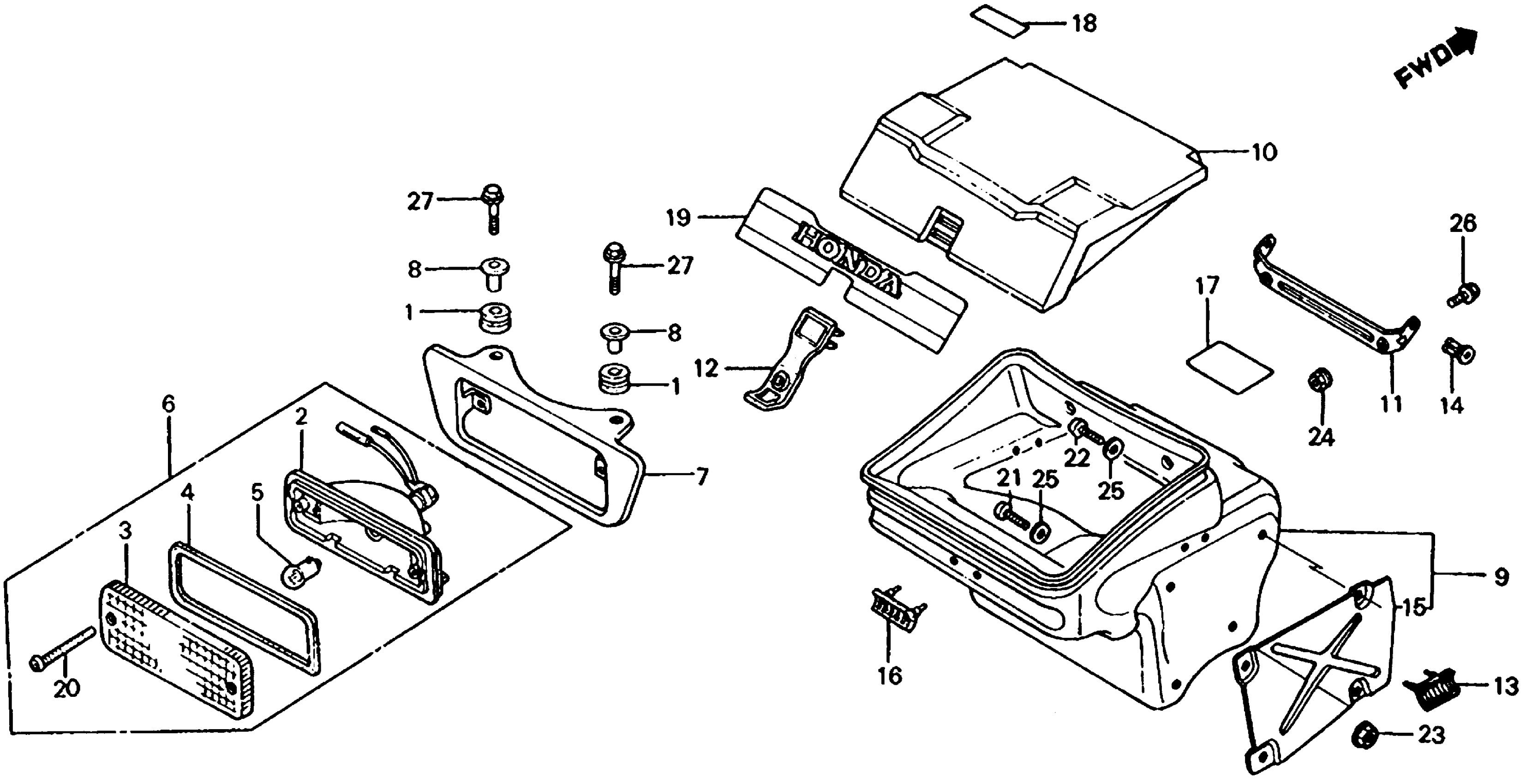 Honda ATC200ESA (84) BIG RED, JPN, VIN# JH3TB055-EC307605 TO JH3TB055-EC516032 TAILLIGHT + TOOL BOX Diagram