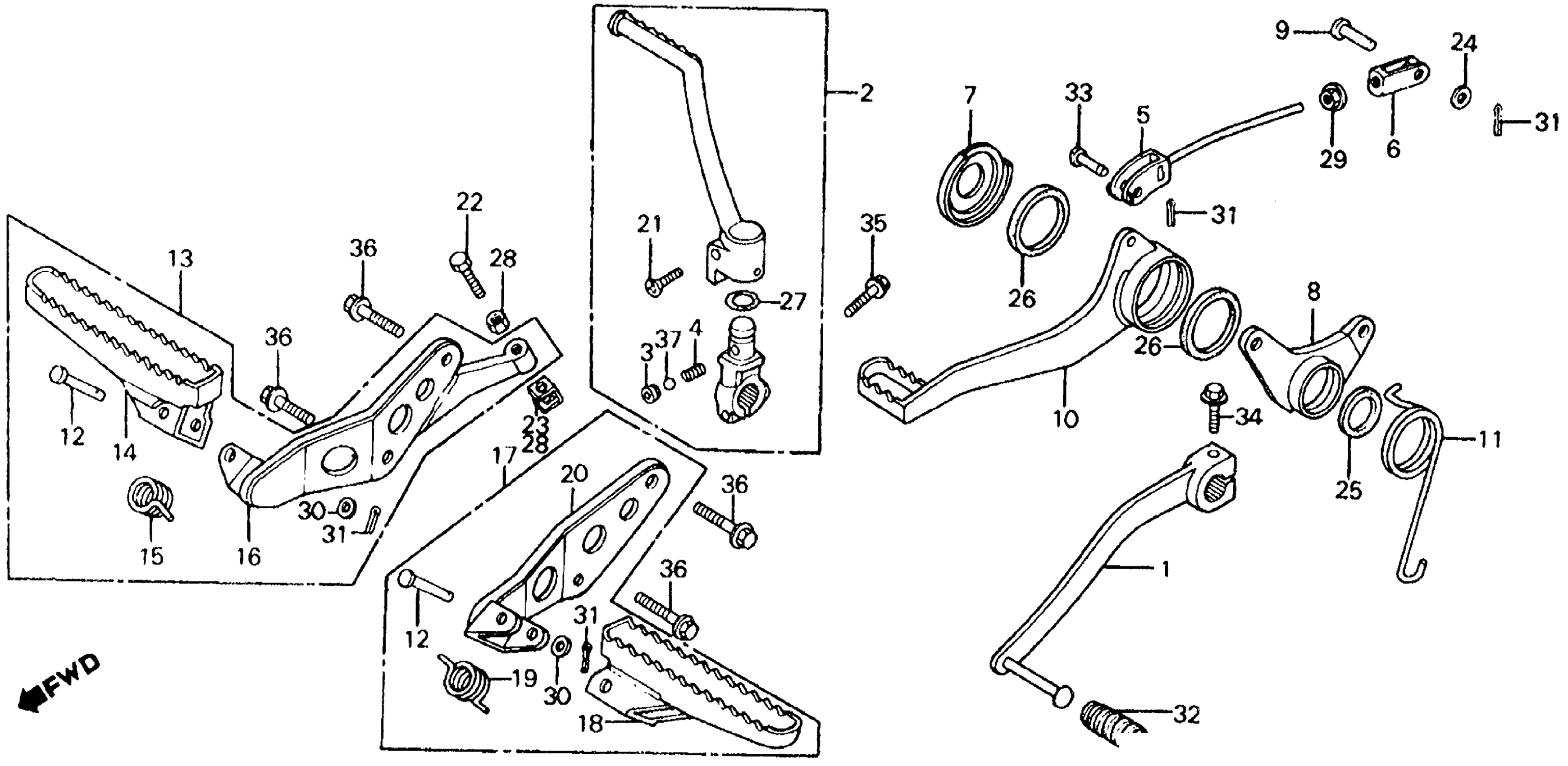 FOOTPEGS + BRAKE PEDAL + GEARSHIFT PEDAL