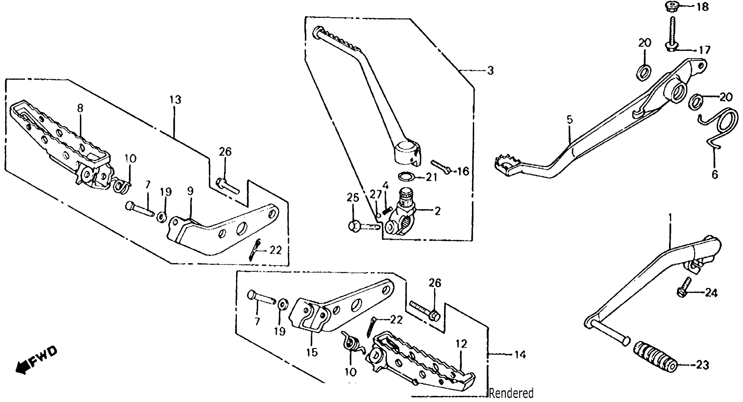 BRAKE PEDAL + GEARSHIFT PEDAL + FOOTPEG 83-84