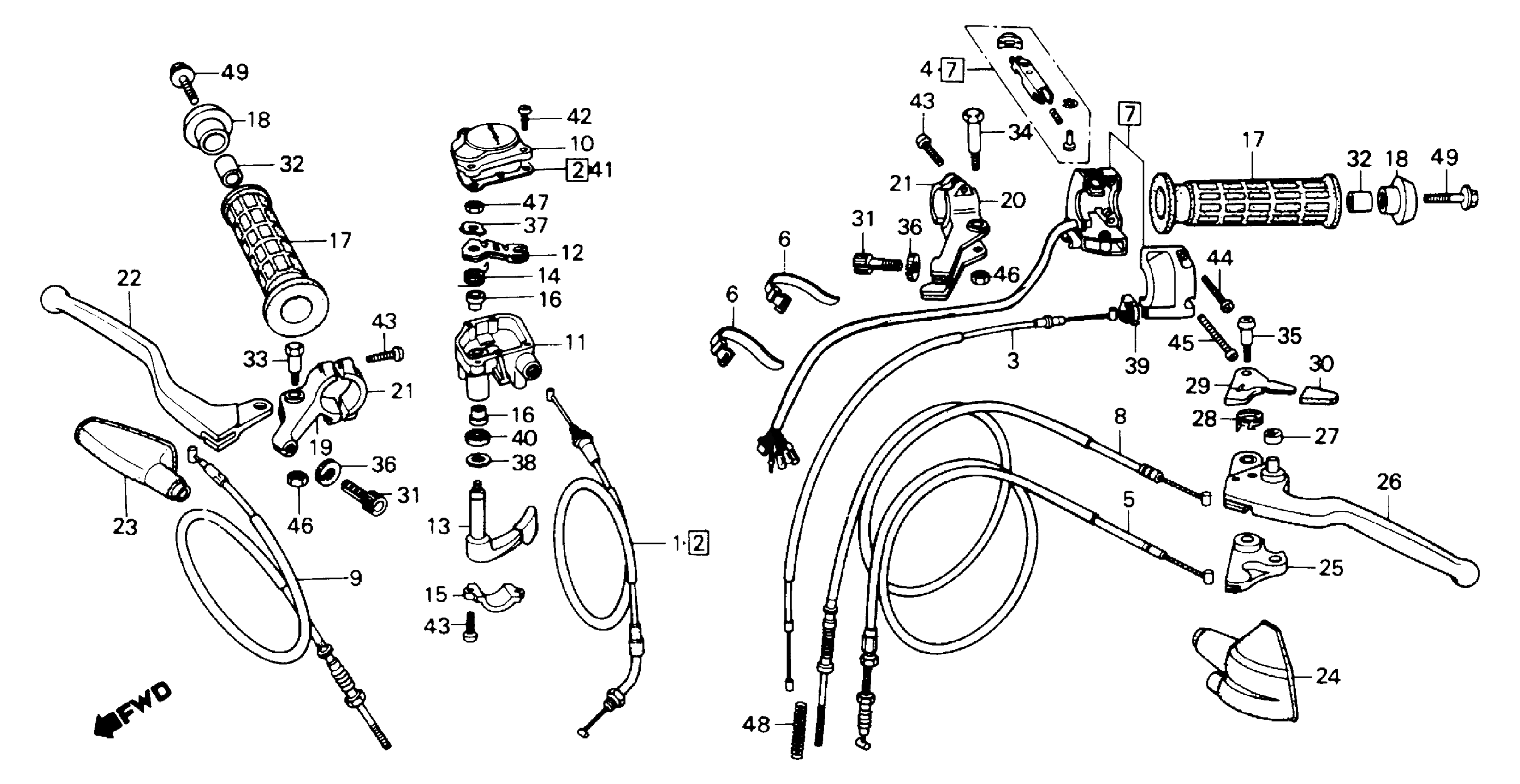Honda ATC250SXA (85) ALL TERRAIN CYCLE, JPN, VIN# JH3TE042-FM000006 TO JH3TE042-FM056972 SWITCH + HANDLE LEVER + CABLE Diagram