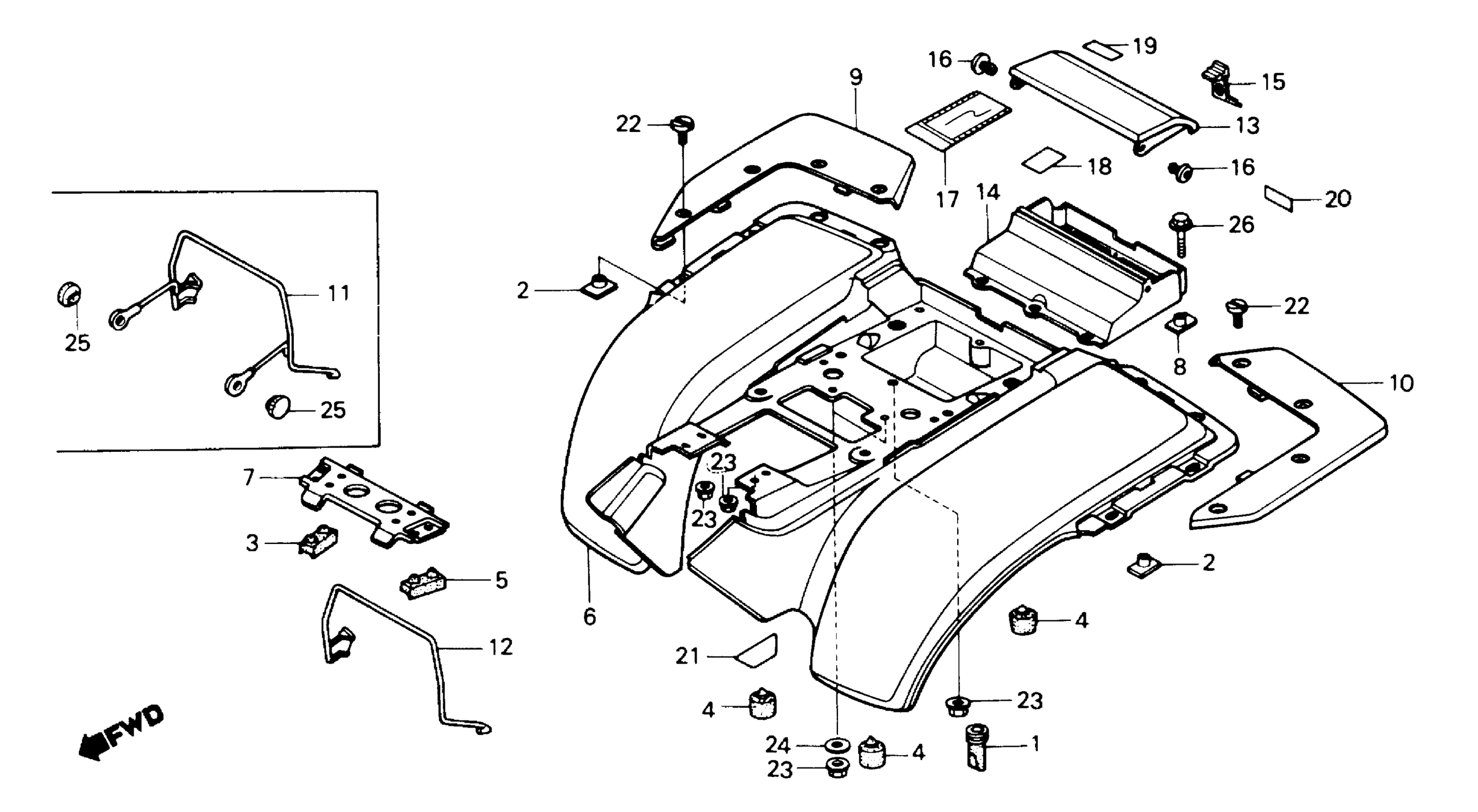 Honda ATC250SXA (86) ALL TERRAIN CYCLE, JPN, VIN# JH3TE042-GM100011 TO JH3TE042-GM111920 REAR FENDER Diagram