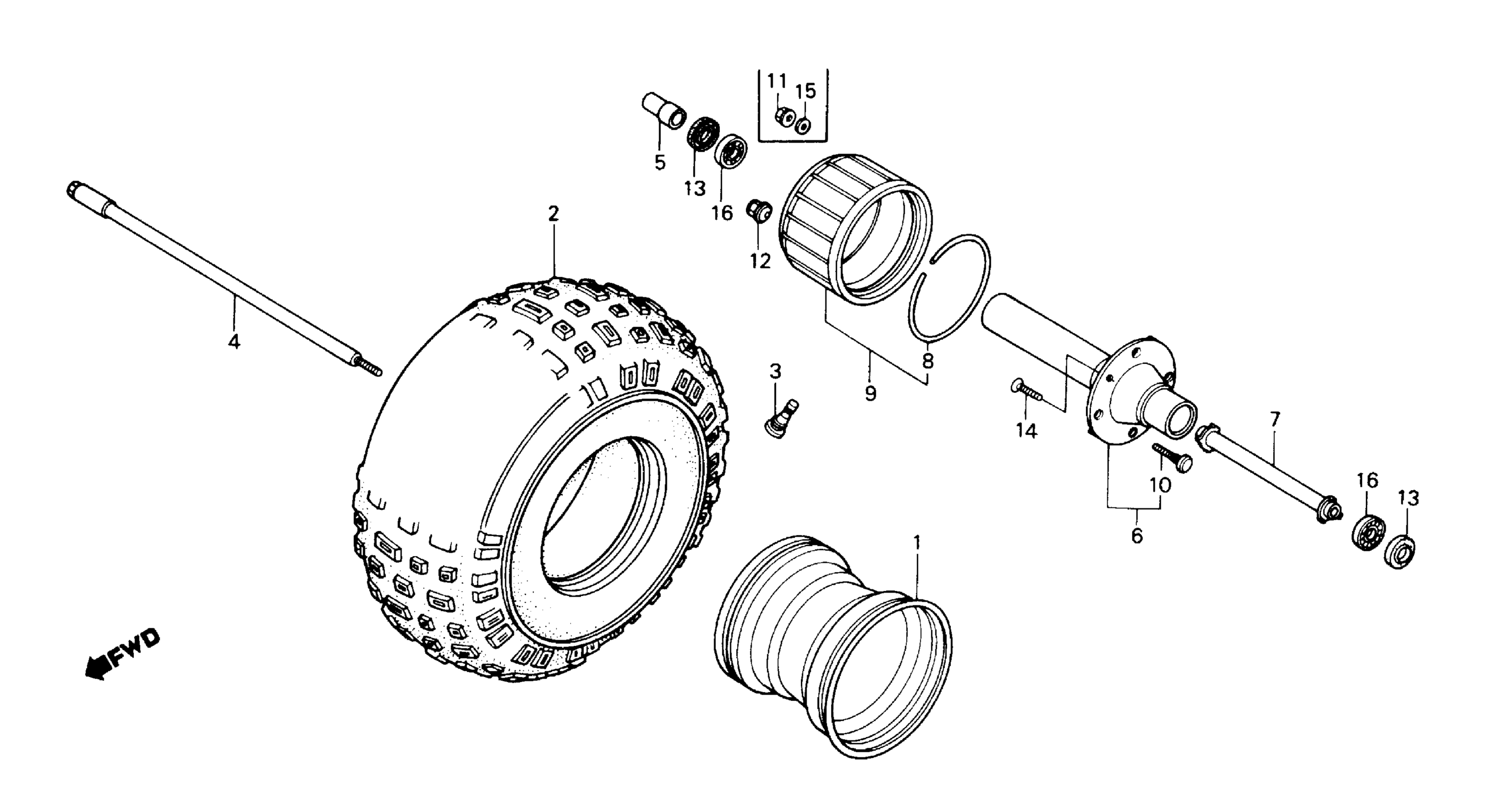 Honda ATC250SXA (87) ALL TERRAIN CYCLE, JPN, VIN# JH3TE042-HK200001 FRONT WHEEL Diagram
