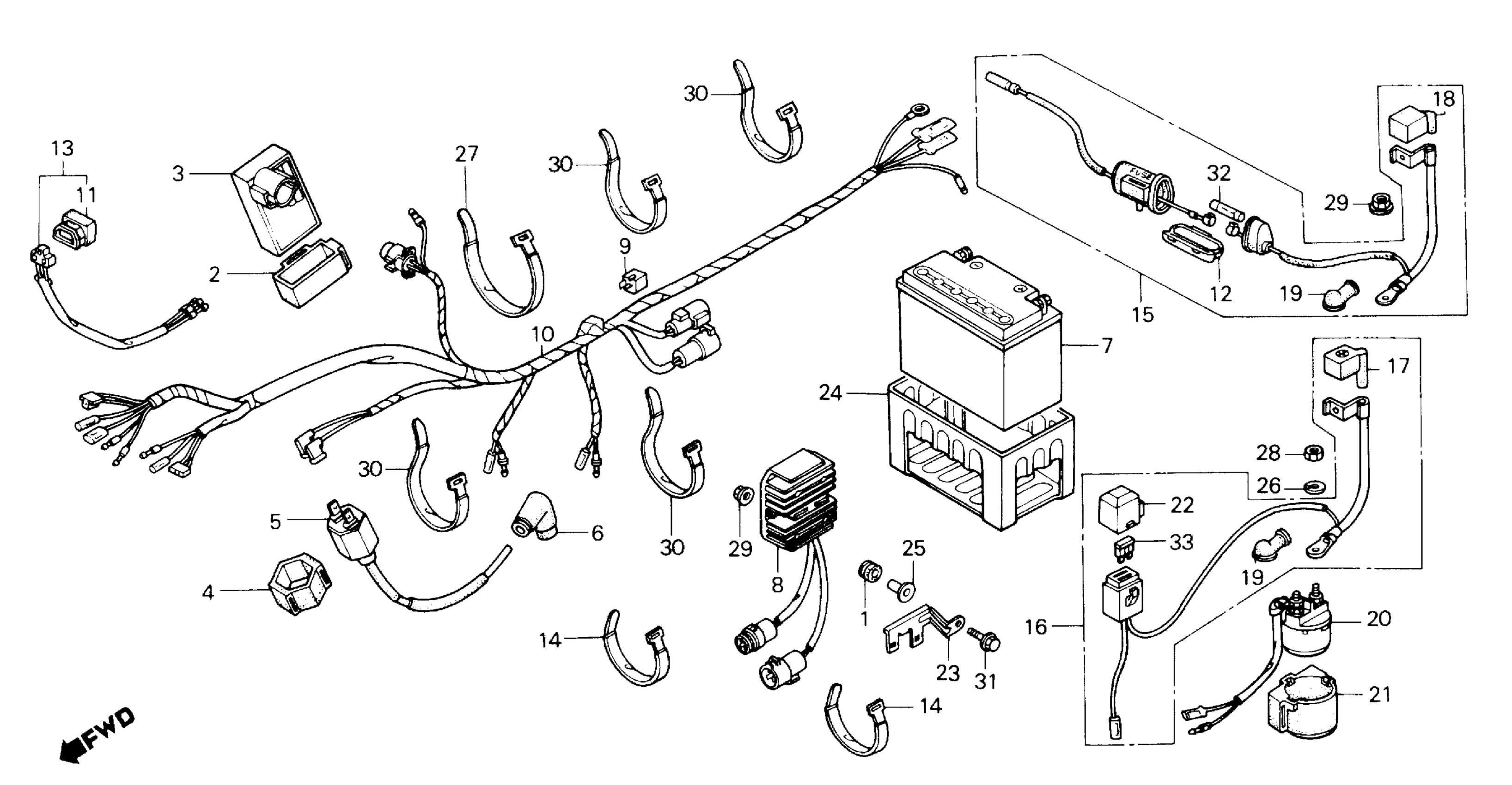 Honda ATC250SXA (87) ALL TERRAIN CYCLE, JPN, VIN# JH3TE042-HK200001 WIRE HARNESS + BATTERY Diagram