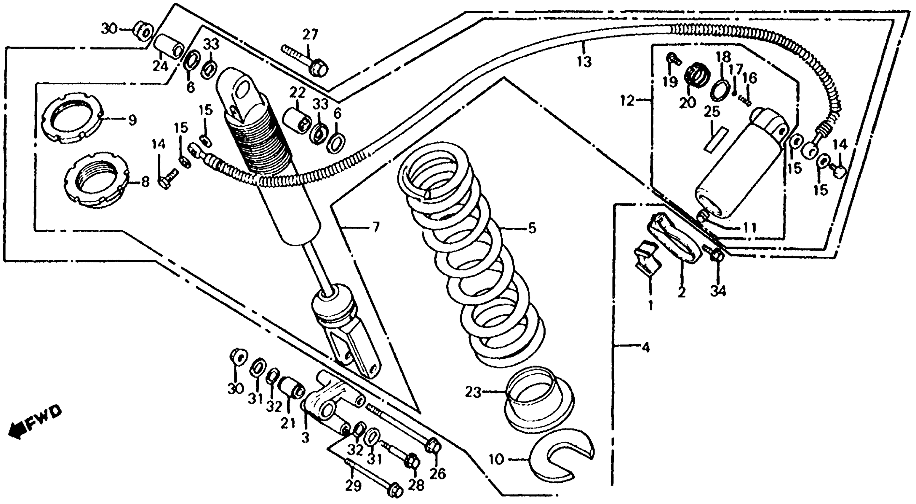 Honda ATC350XA (85) ALL TERRAIN CYCLE, JPN, VIN# JH3TE080-FM000032 TO JH3TE080-FM025531 REAR SHOCK ABSORBER Diagram