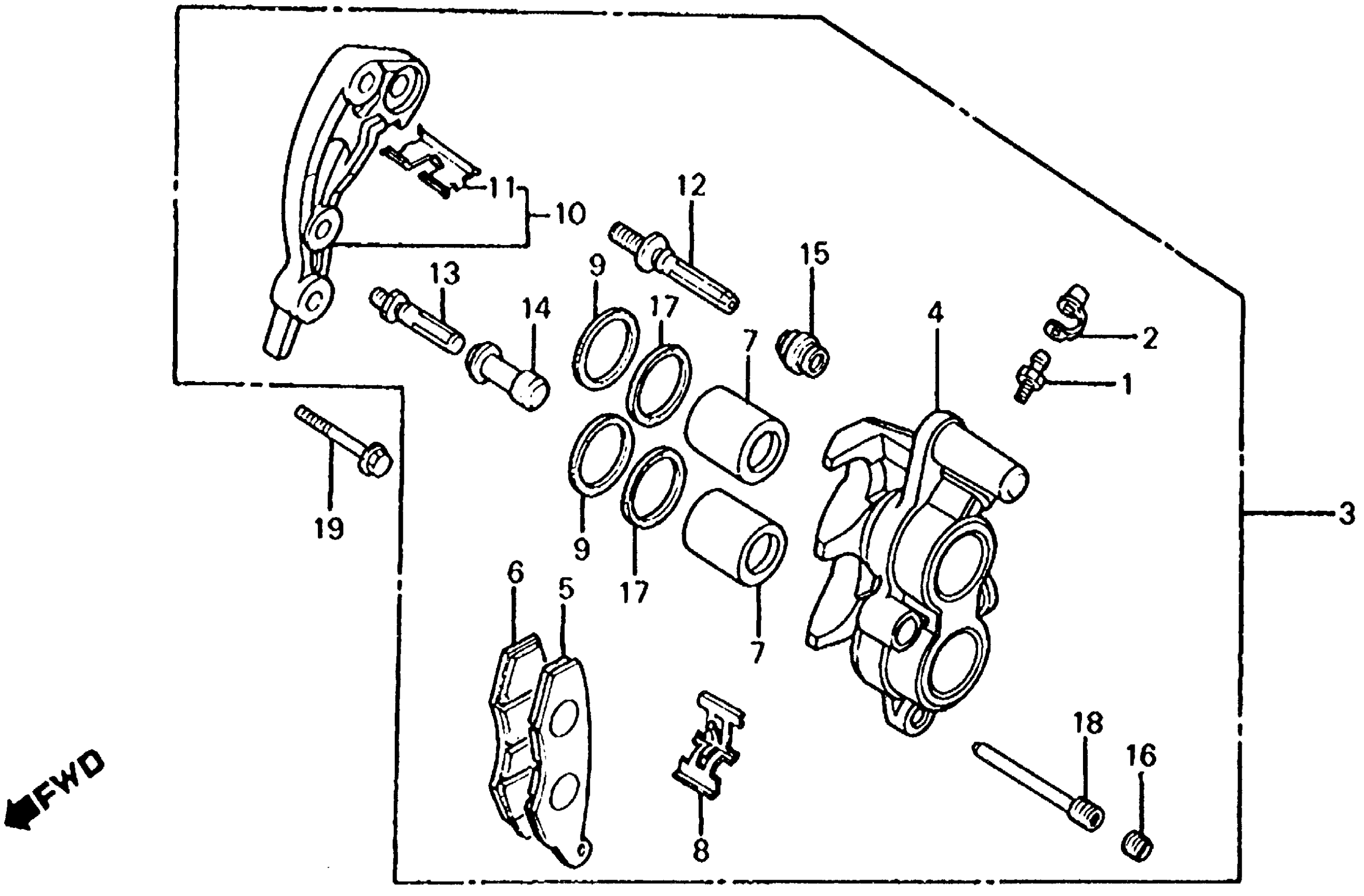 Honda ATC350XA (86) ALL TERRAIN CYCLE, JPN, VIN# JH3TE080-GM100008 FRONT BRAKE CALIPER (2) Diagram