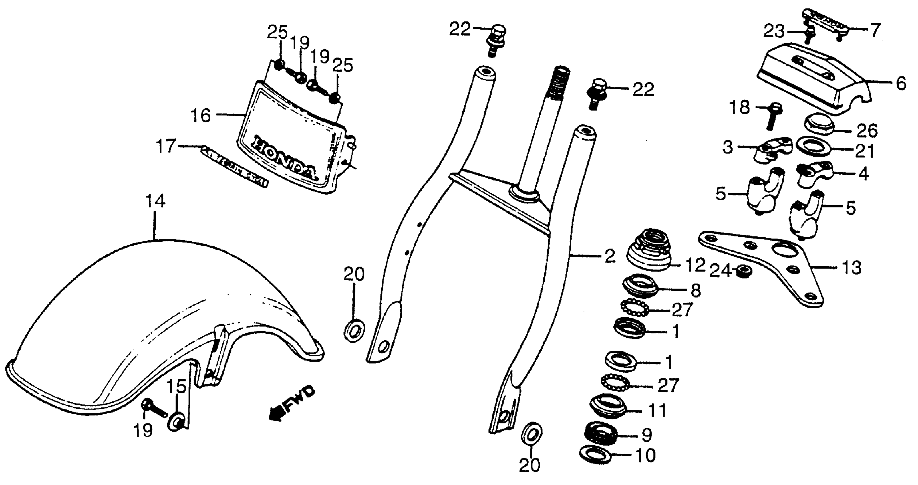 FRONT FENDER + FRONT FORK 83-85