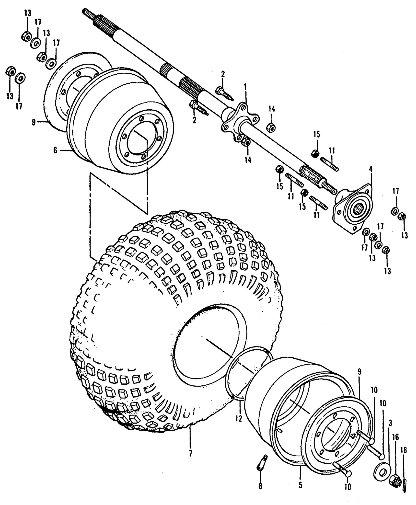 REAR WHEEL + AXLE