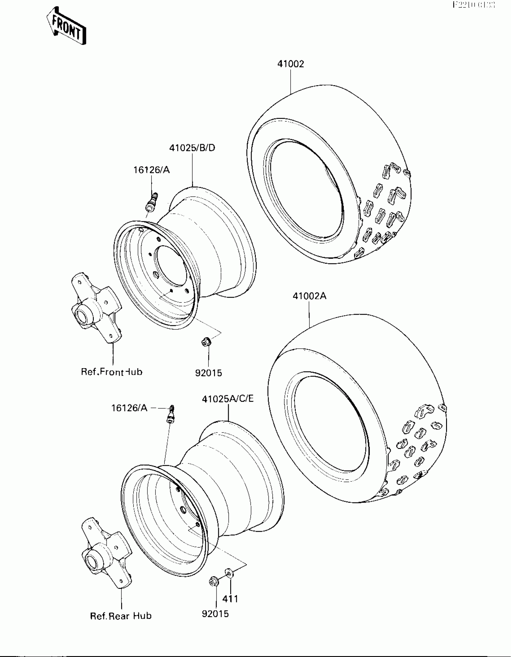 Kawasaki Bayou 300 WHEELS/TIRES Diagram