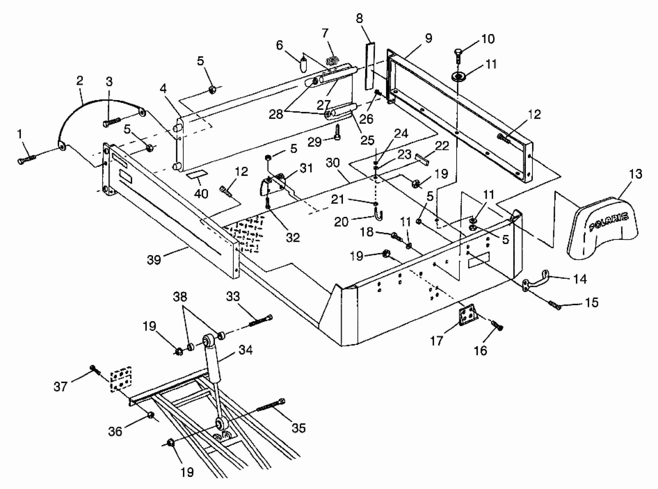 Polaris BIG BOSS 6X6 400L - W97AE38A REAR BED MOUNTING BIG BOSS 6X6 400L W97AE38A (4940814081A008) Diagram