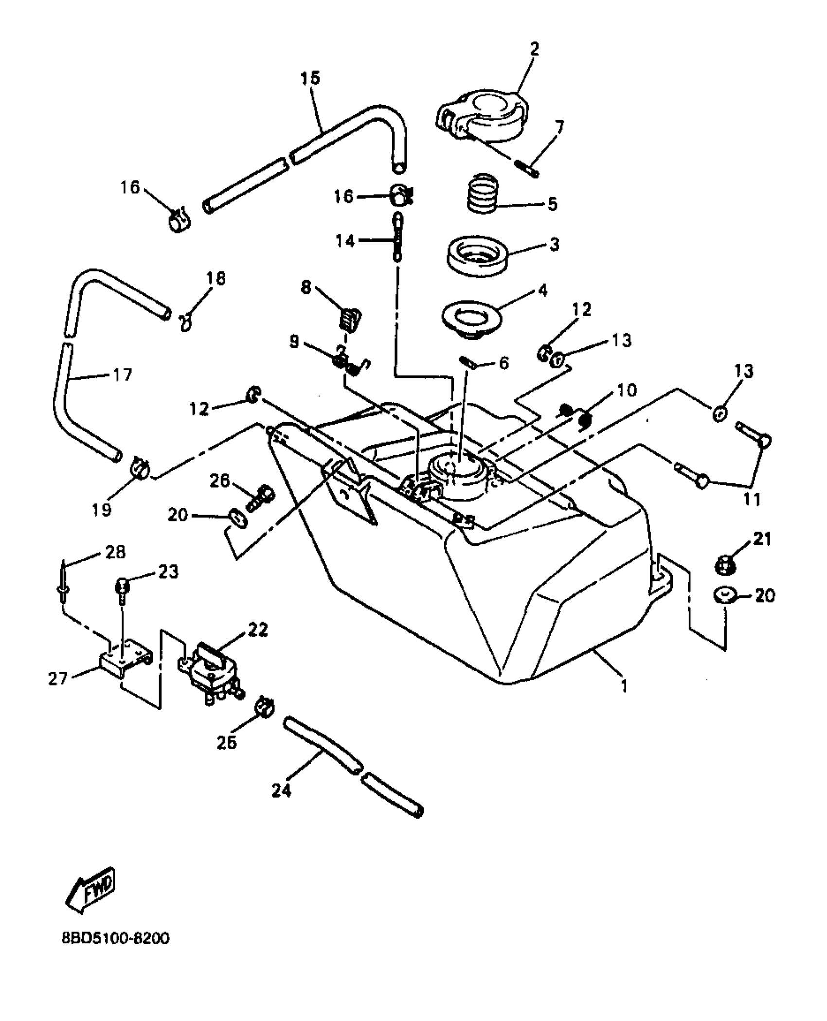 Yamaha BR250TB (BRAVO LT) 1998 FUEL TANK 2 Diagram