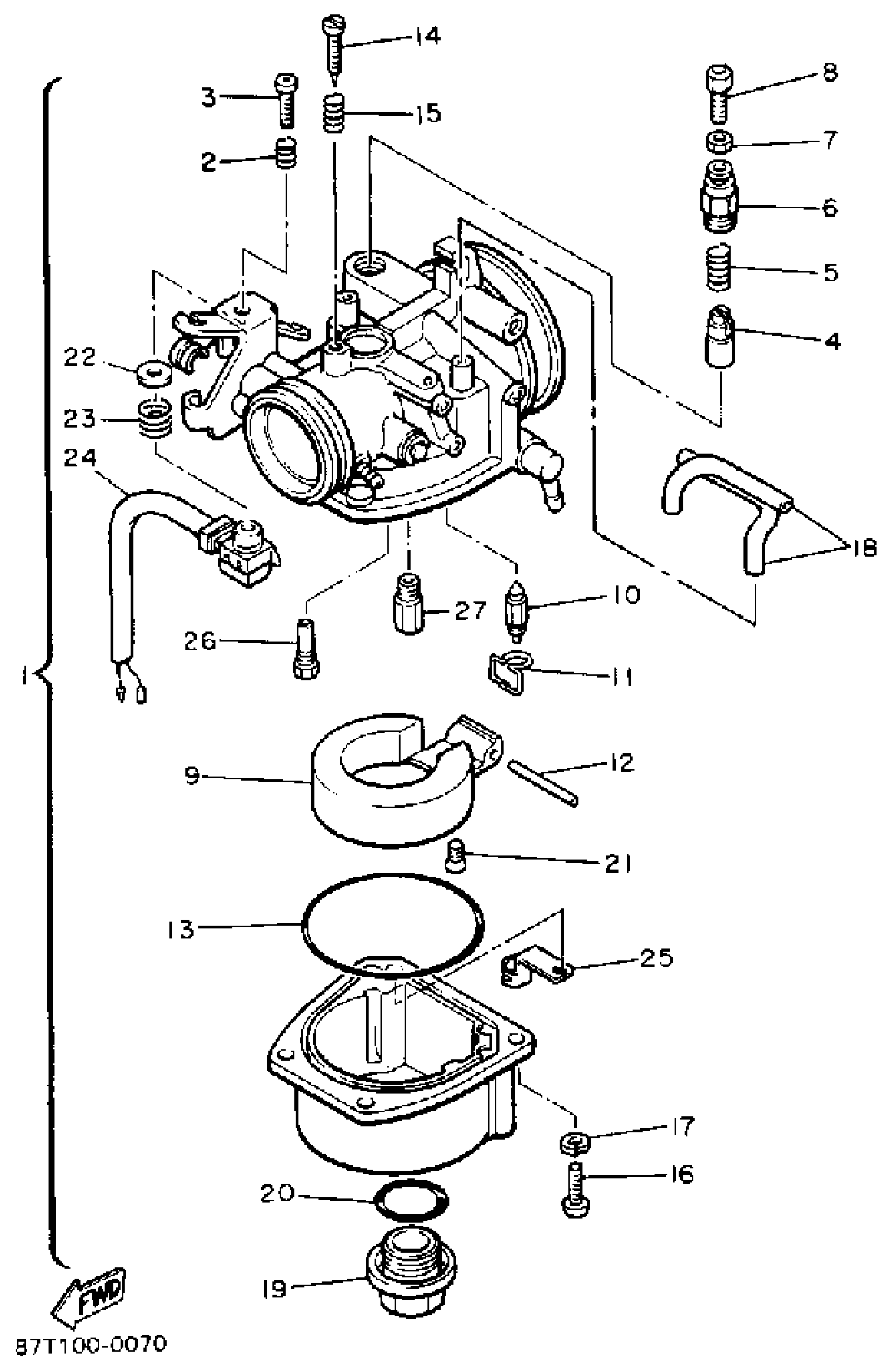 Yamaha BR250TP (BRAVO LT (LONG TRACK)) 1990 CARBURETOR Diagram