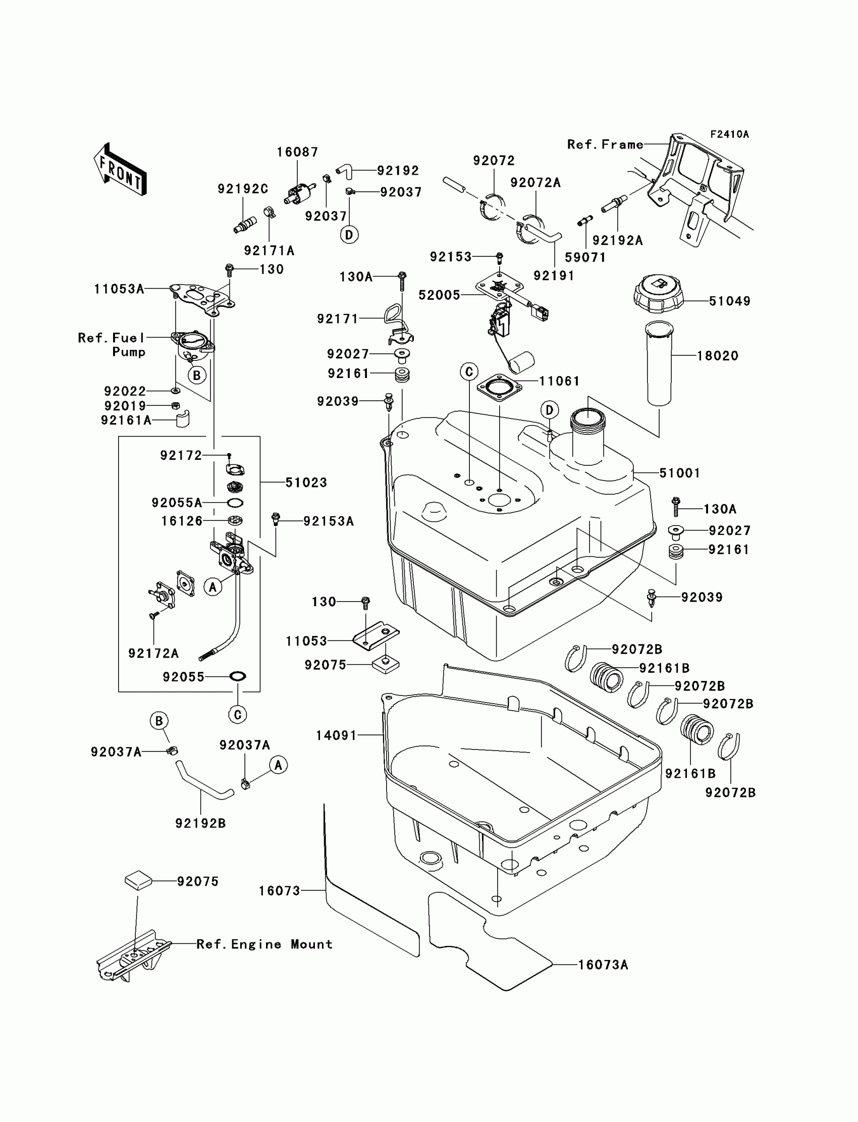 Kawasaki Brute Force 750 4x4i Fuel Tank(A7F) Diagram