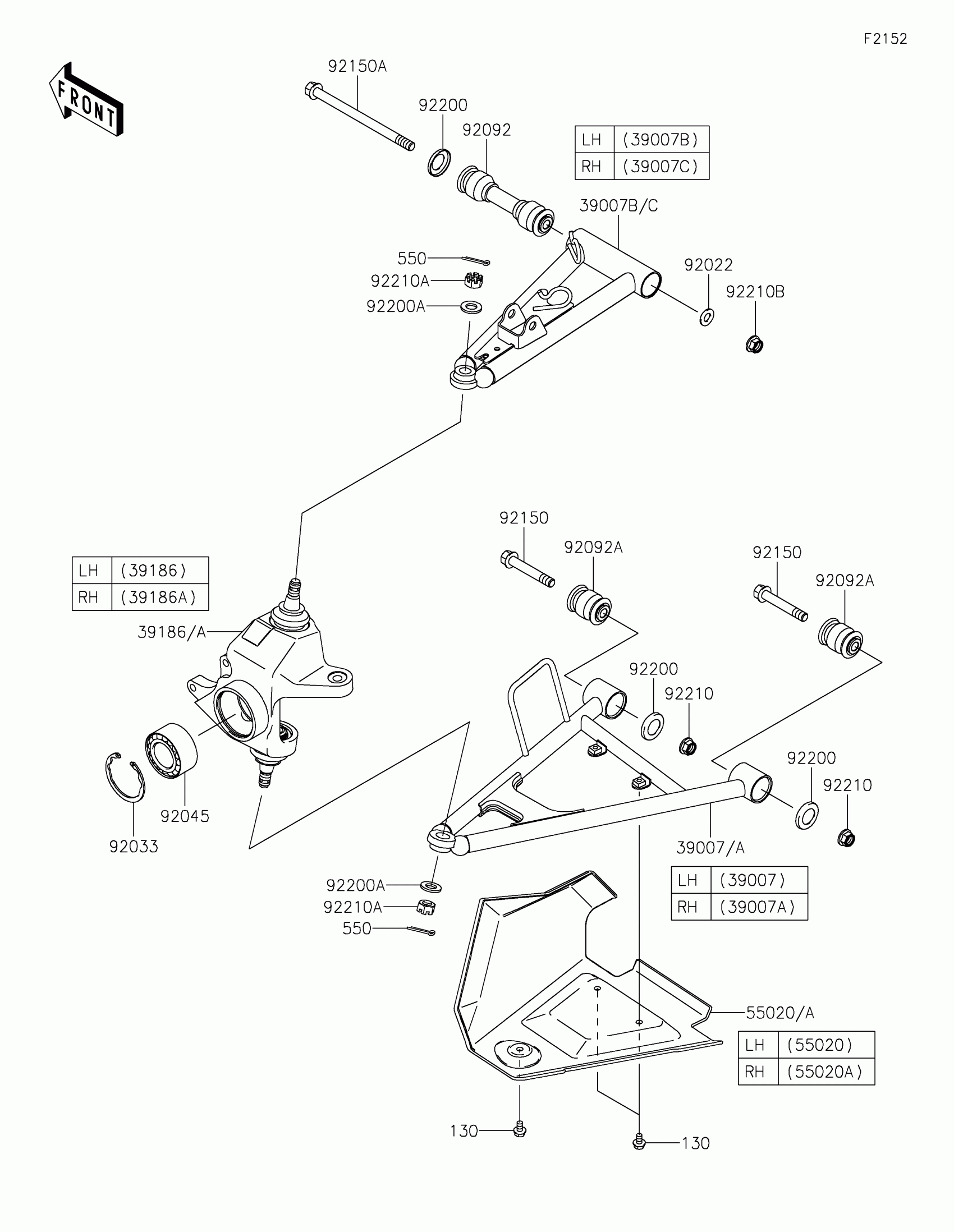 Kawasaki BRUTE FORCE® 750 LE EPS CAMO Front Suspension Diagram