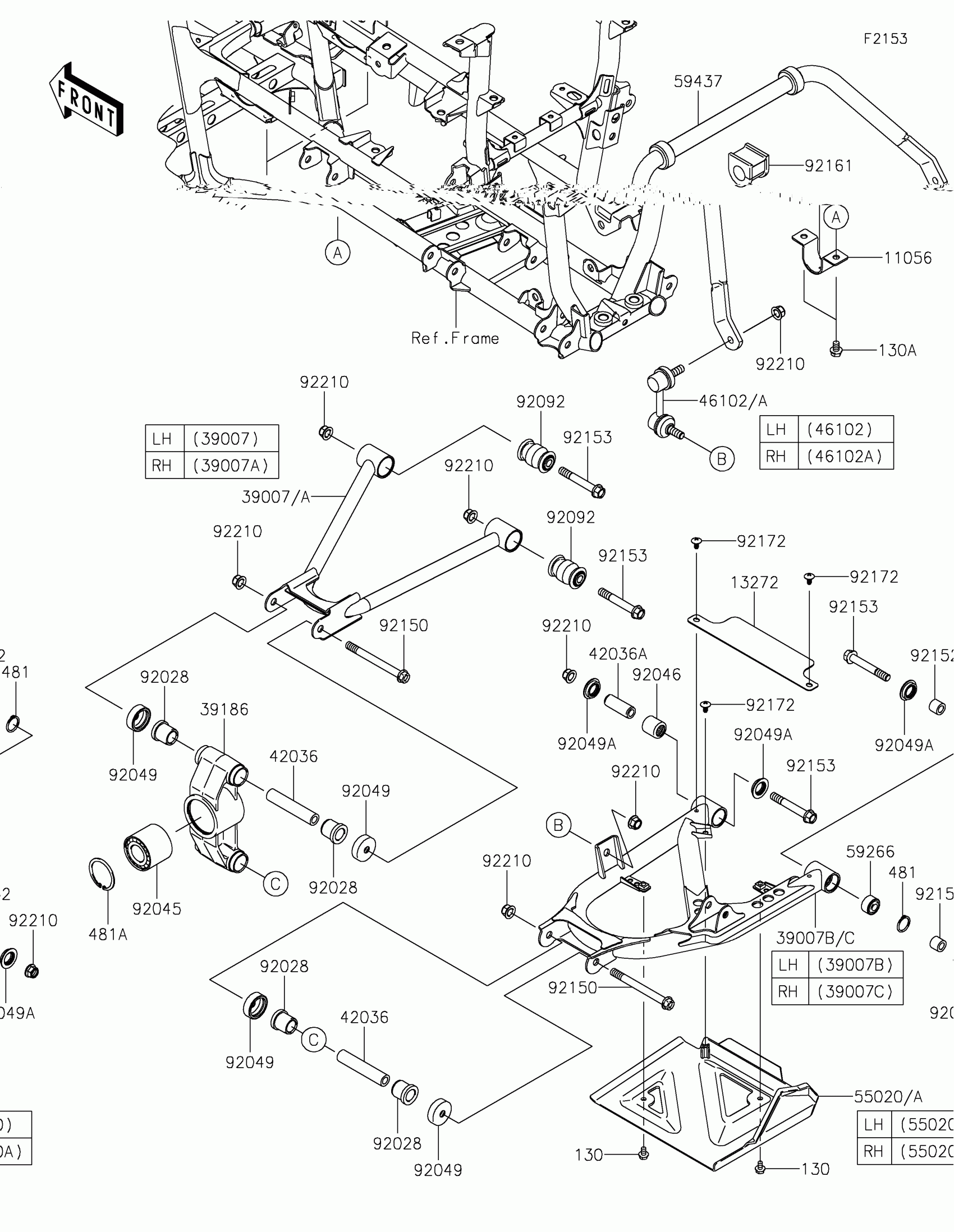 Kawasaki BRUTE FORCE® 750 LE EPS CAMO Rear Suspension Diagram