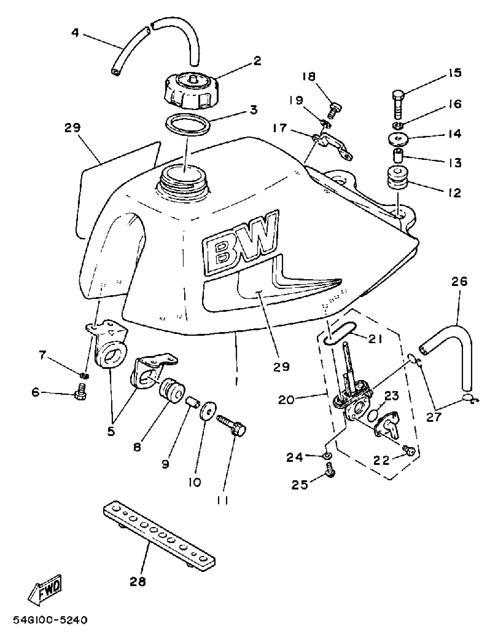 Yamaha BW200N (BIG WHEEL) 1985 FUEL TANK Diagram