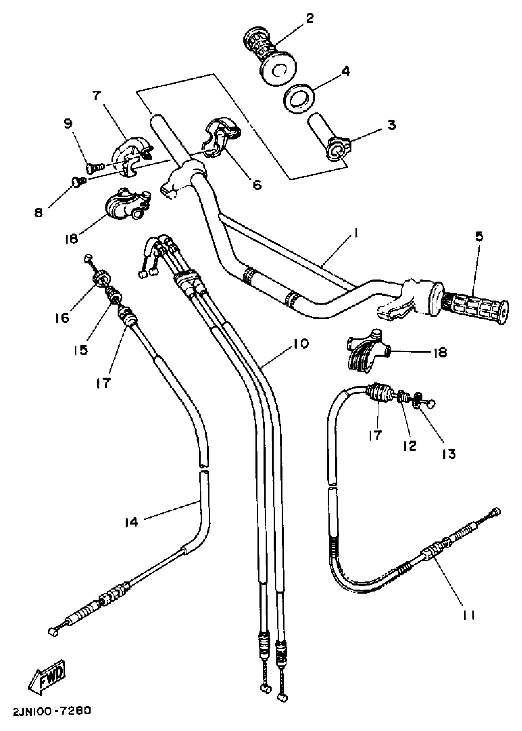 Yamaha BW350U (BIG WHEEL) 1988 HANDLEBAR CABLE Diagram