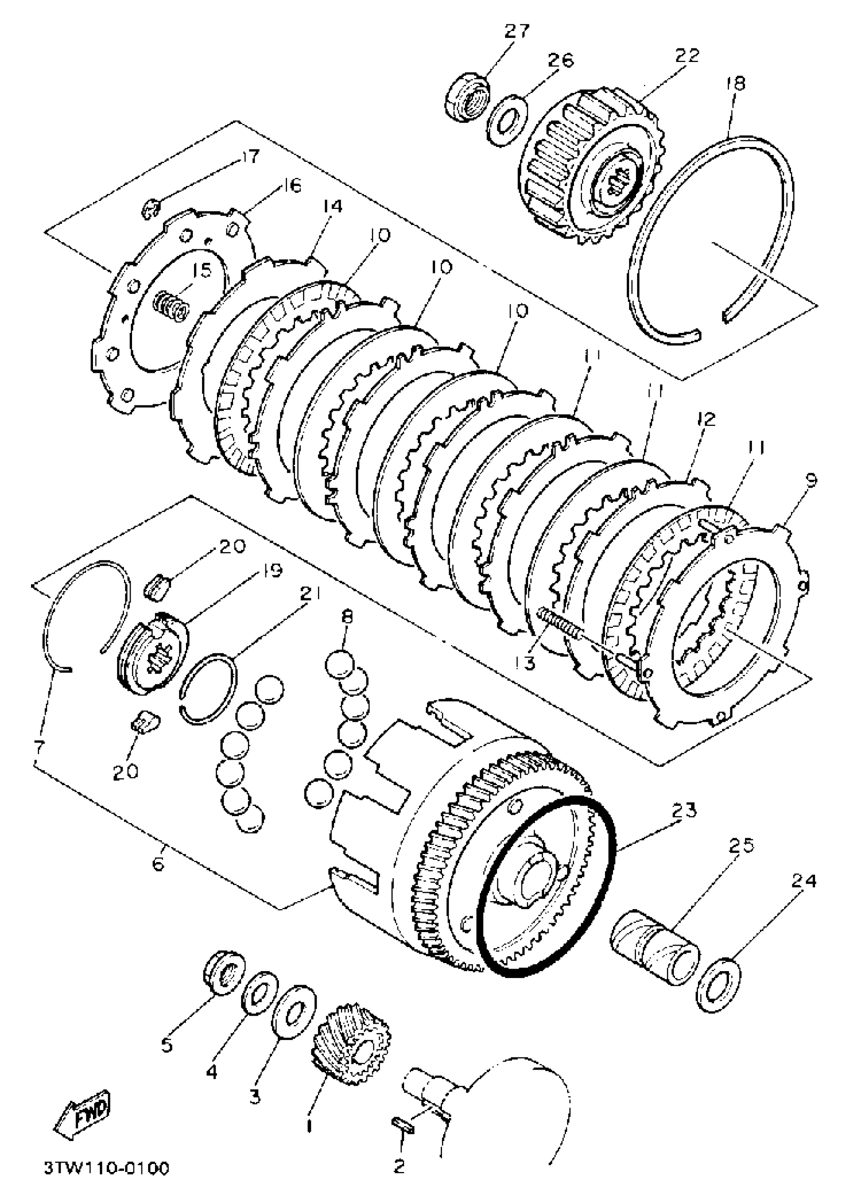 Yamaha BW80A (BIG WHEEL) 1990 CLUTCH Diagram