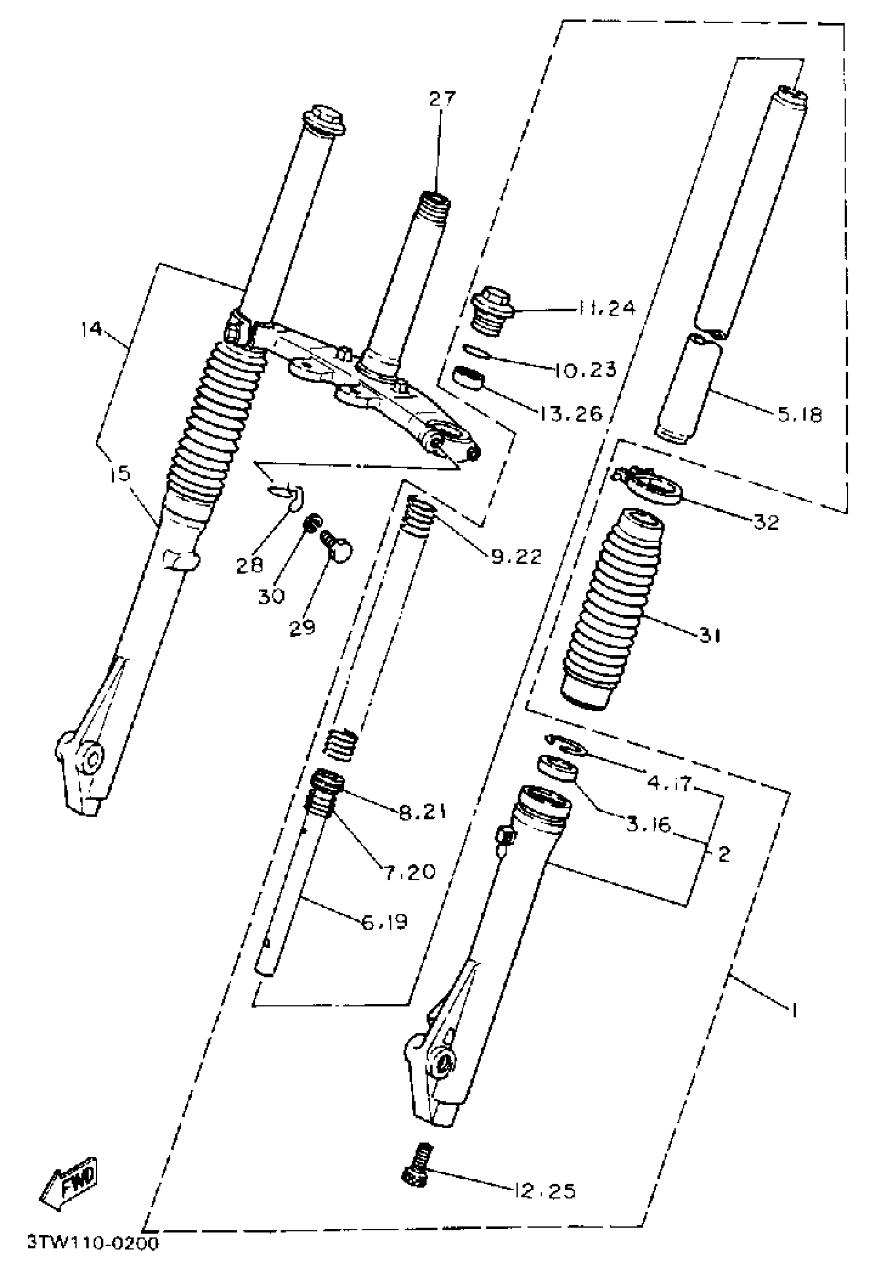 Yamaha BW80A (BIG WHEEL) 1990 FRONT FORK Diagram