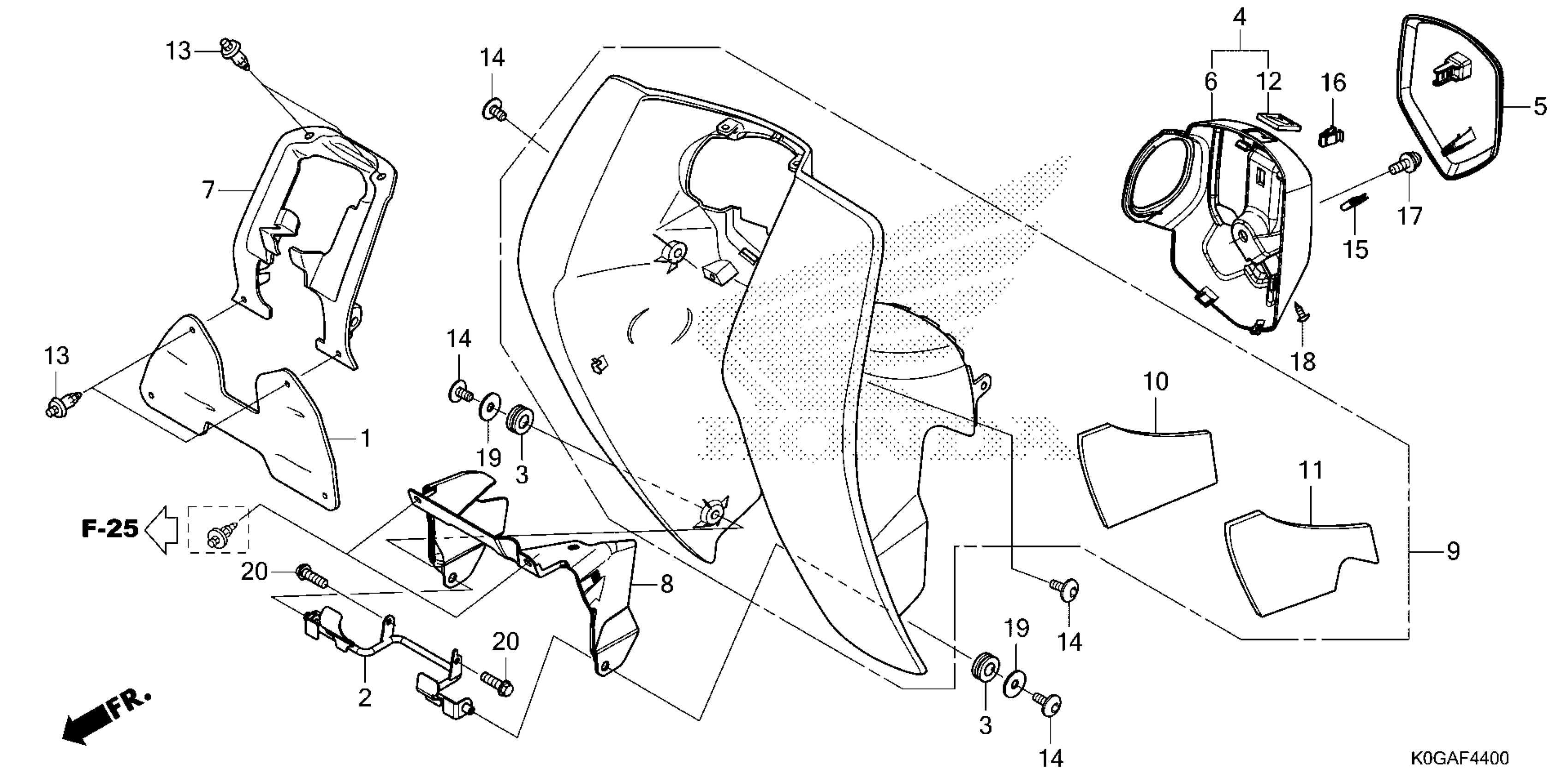 Honda C125AAC (23) MOTORCYCLE, THA, VIN# MLHJA585-P5100001 TO MLHJA585-P5199999 FRONT COVER@LEG SHIELD Diagram