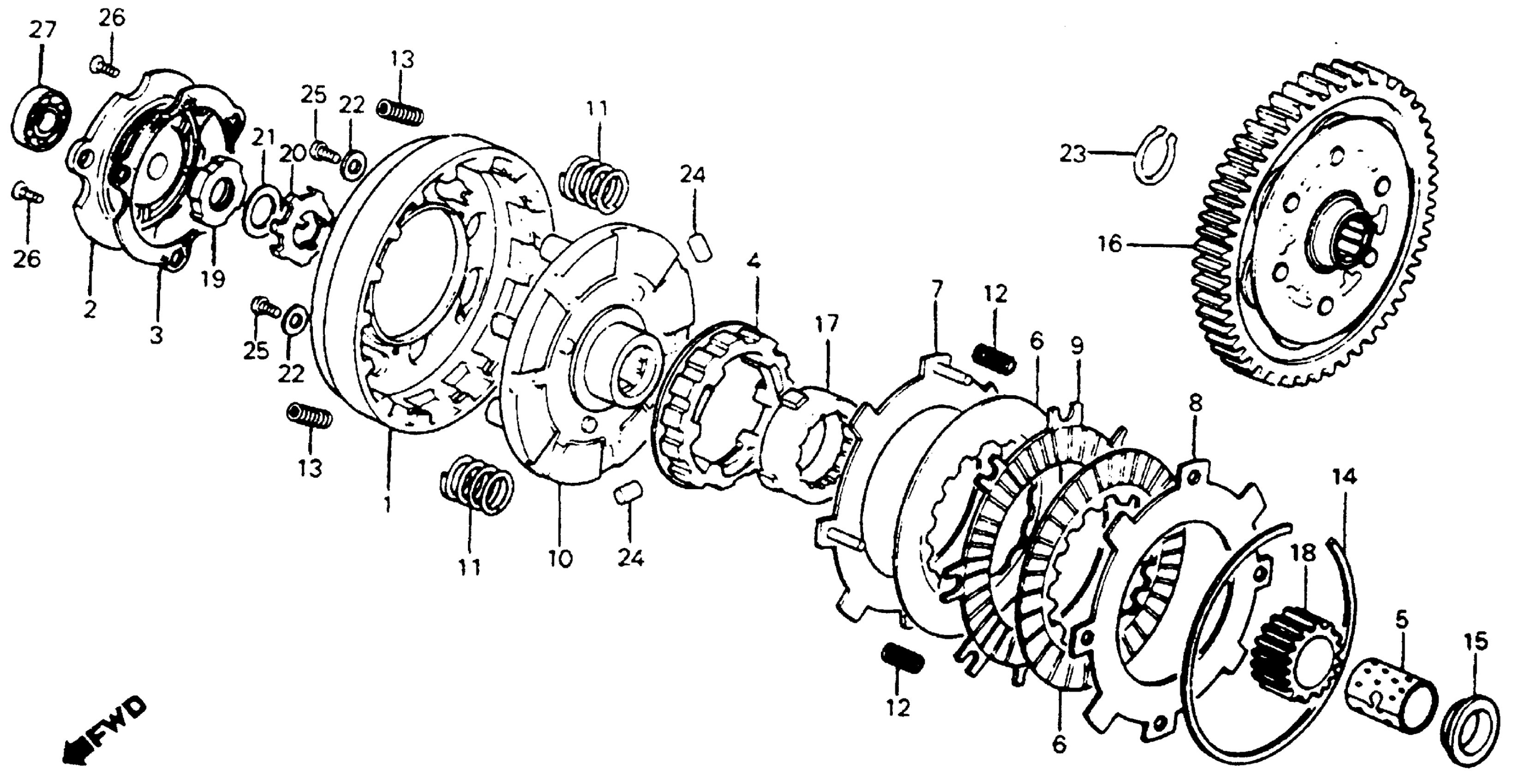Honda C70A (80) PASSPORT, JPN, VIN# DA01-1000014 TO DA01-1012613 CLUTCH Diagram