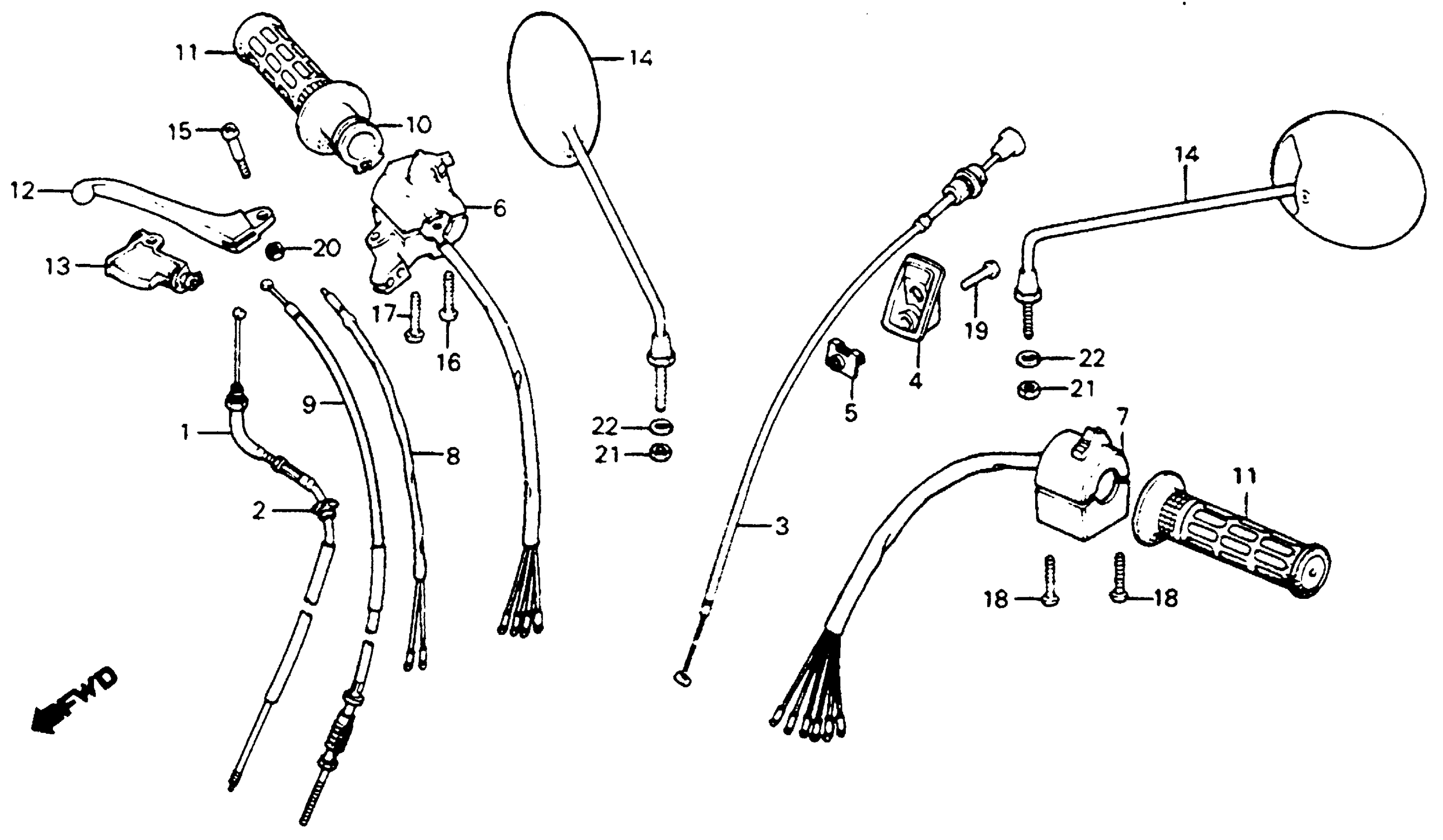 Honda C70A (80) PASSPORT, JPN, VIN# DA01-1000014 TO DA01-1012613 HANDLE LEVER + SWITCH + CABLE Diagram