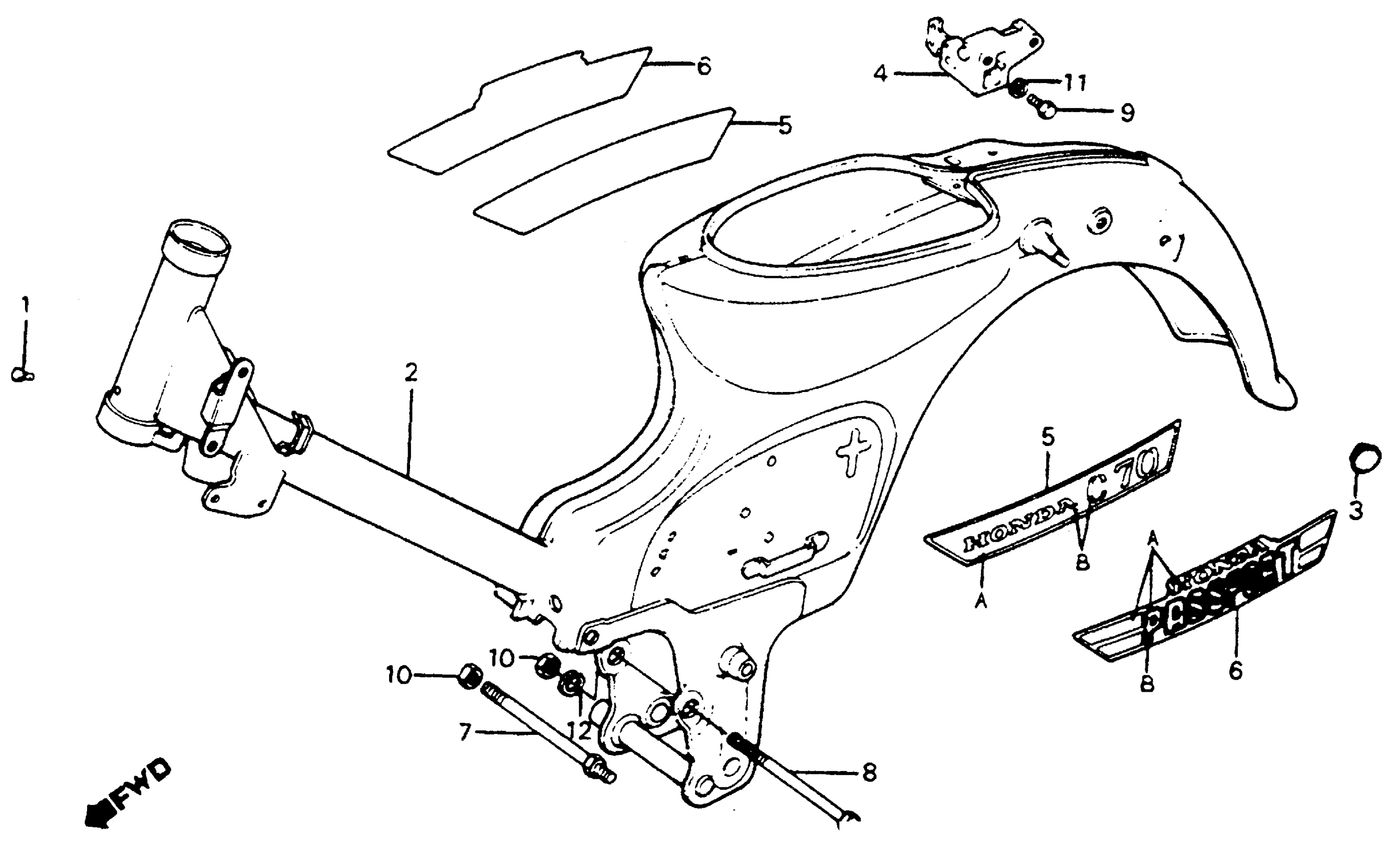 Honda C70A (81) PASSPORT, JPN, VIN# JH2DA010-BS100003 TO JH2DA010-BS136772 FRAME Diagram