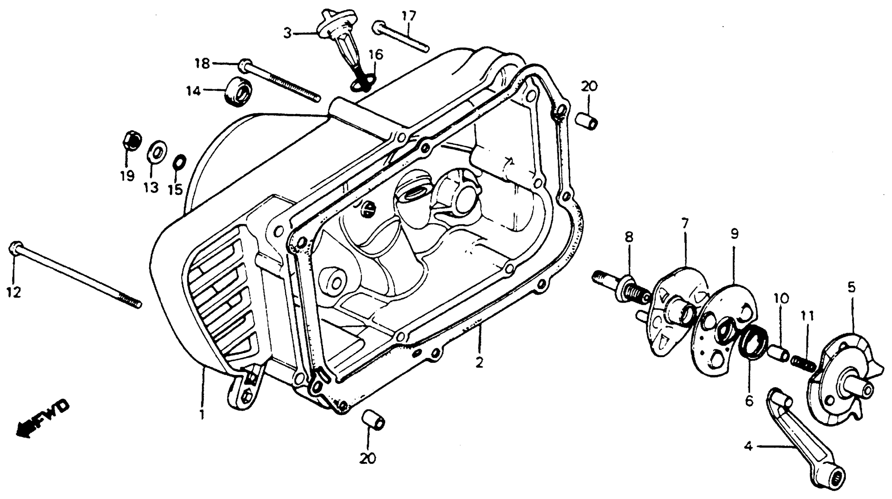 Honda C70A (81) PASSPORT, JPN, VIN# JH2DA010-BS100003 TO JH2DA010-BS136772 RIGHT CRANKCASE COVER Diagram