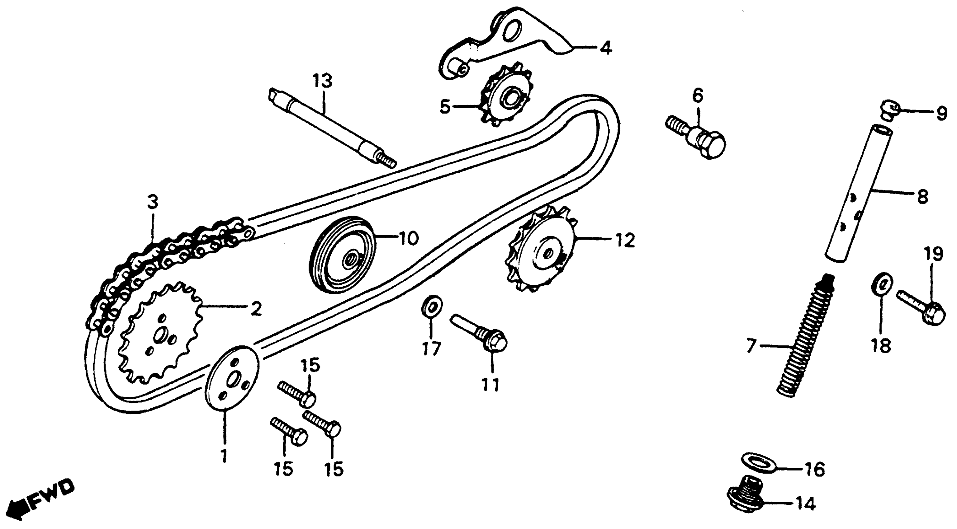 Honda C70A (83) PASSPORT, JPN, VIN# JH2DA010-DS300004 TO JH2DA010-DS308543 CAM CHAIN + TENSIONER Diagram