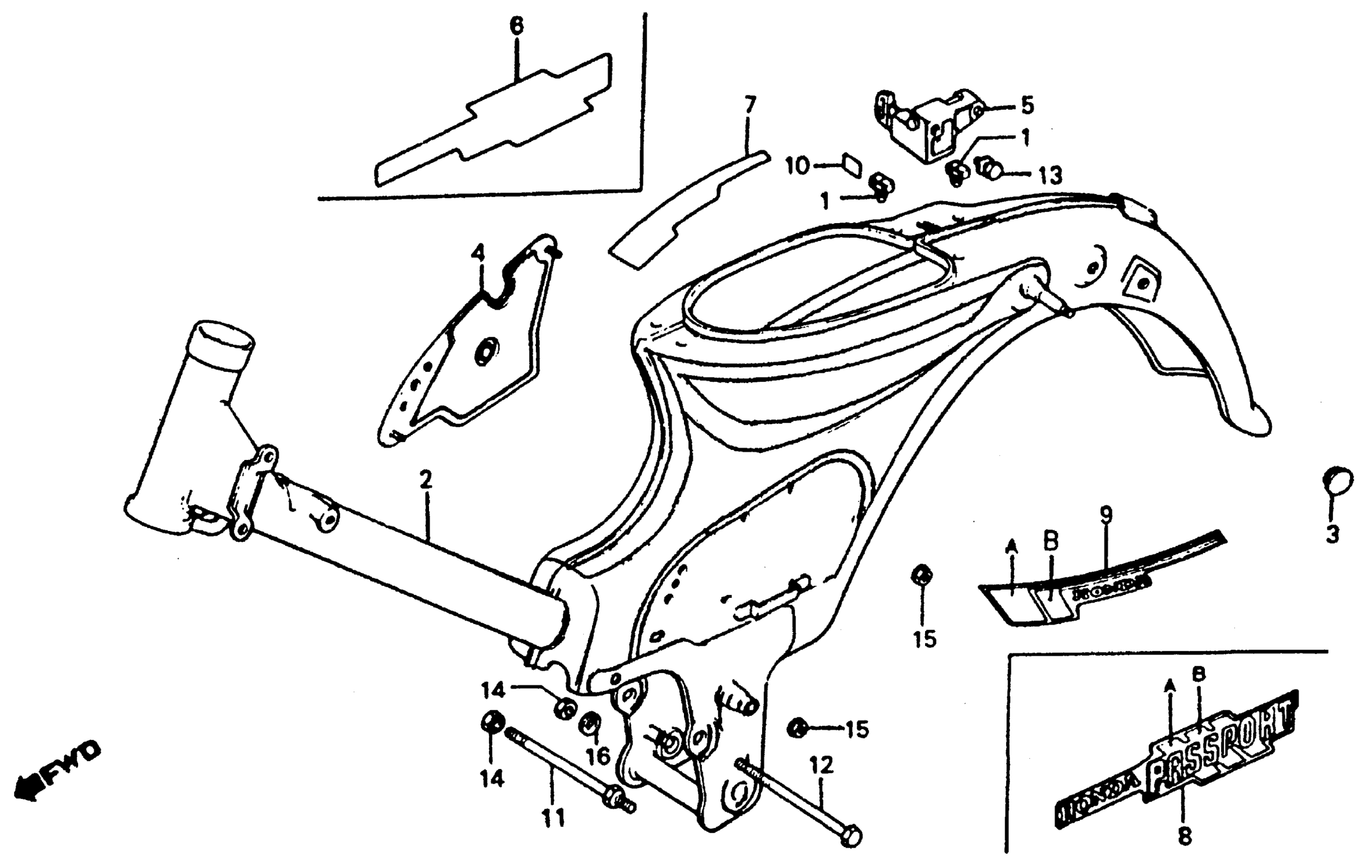 Honda C70A (83) PASSPORT, JPN, VIN# JH2DA010-DS300004 TO JH2DA010-DS308543 FRAME Diagram