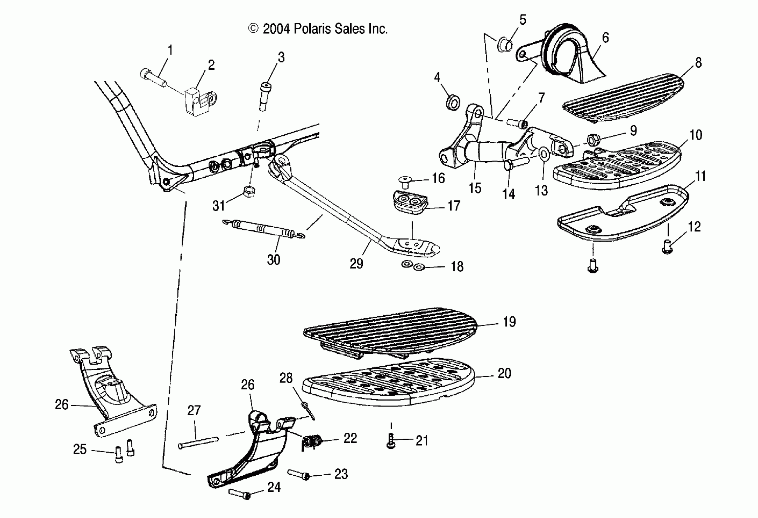 Polaris CA TOURING CRUISER ALL OPTIONS - V05TB16 CHASSIS, FLOOR BOARD and SIDE STAND - V05TB16/ALL OPTIONS (4996279627A06) Diagram
