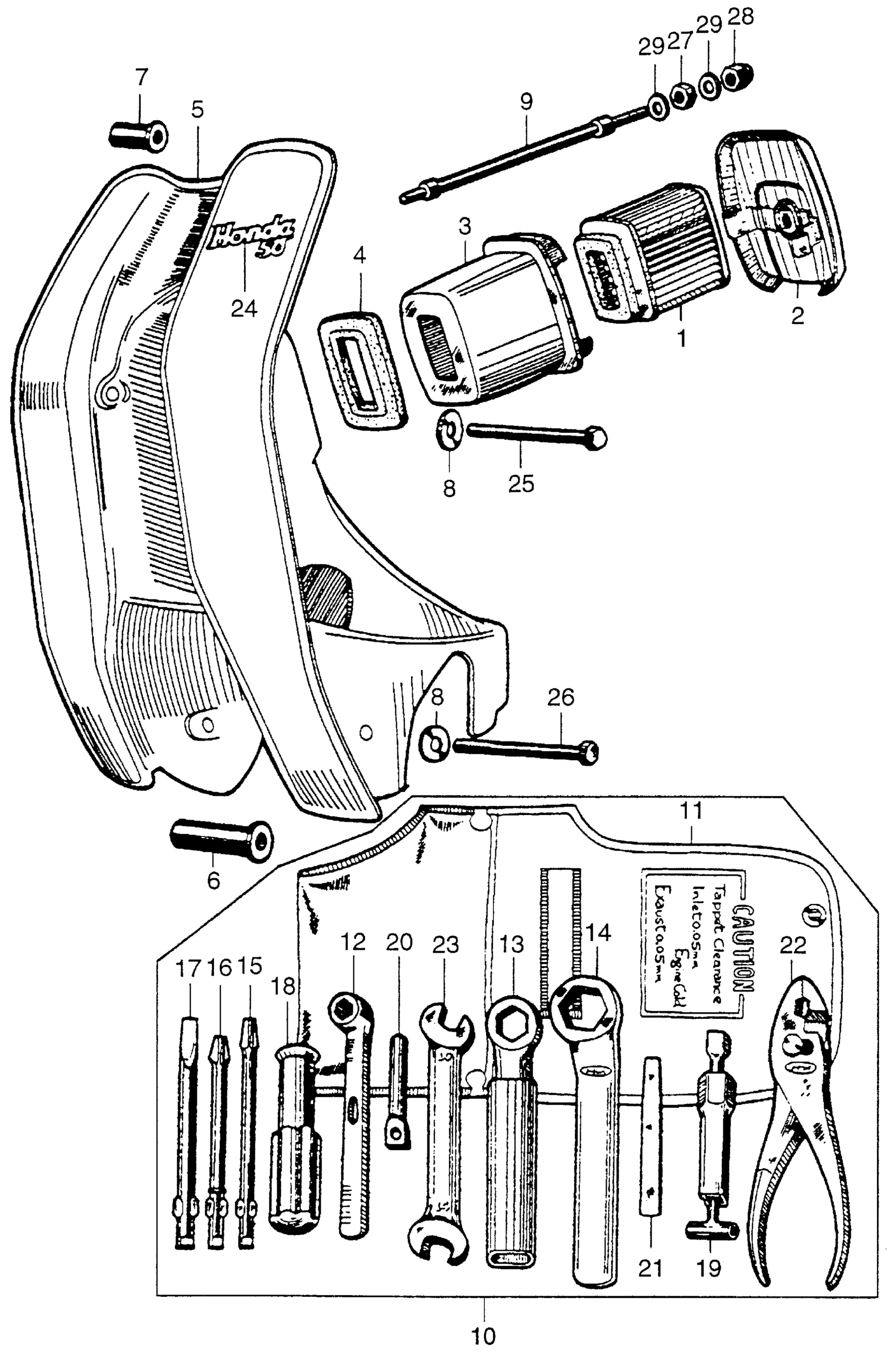 FRONT COVER + AIR CLEANER + TOOL