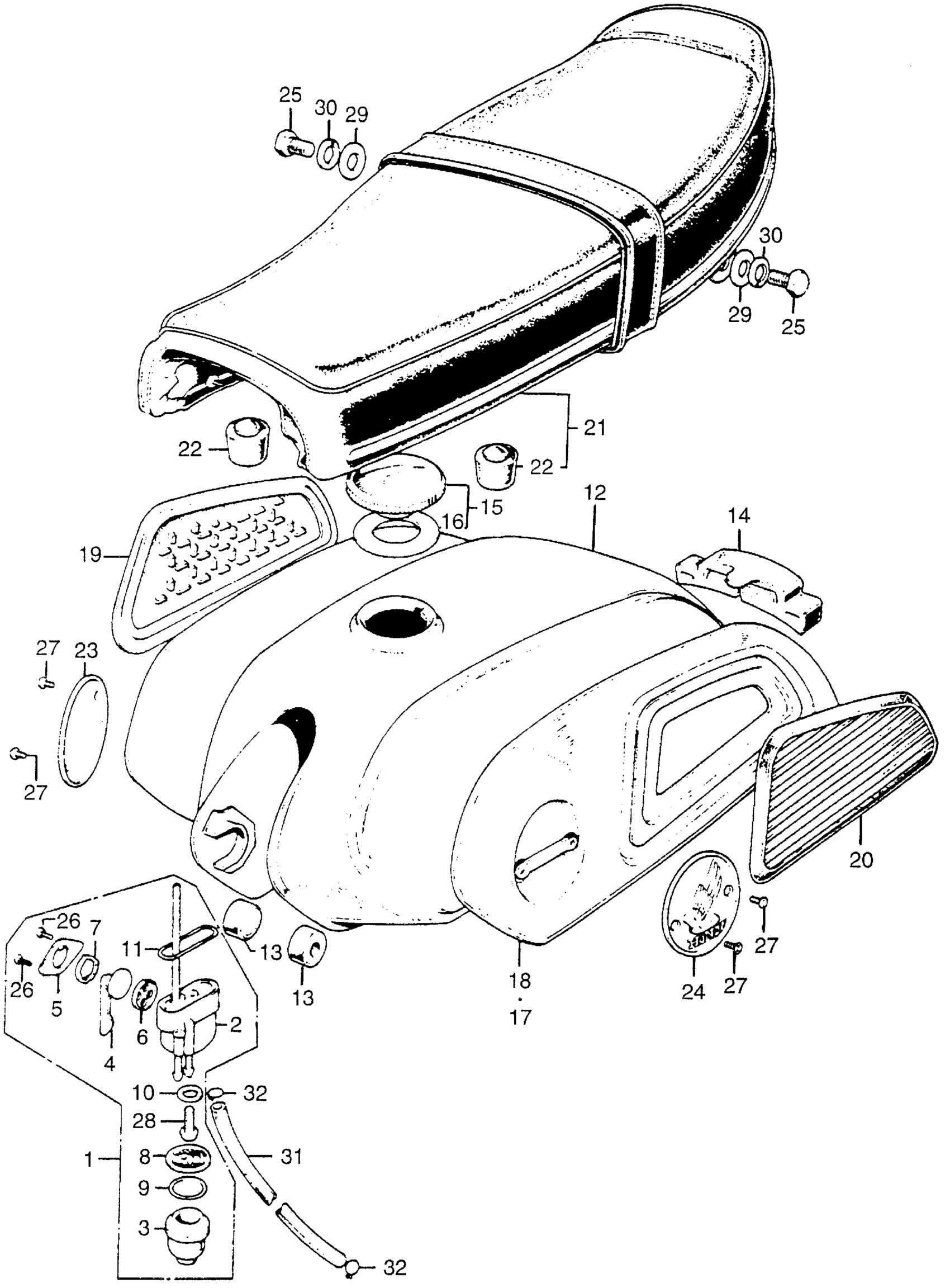 Honda CA175K3A MOTORCYCLE, JPN, VIN# CD175-2005045 CA175 FUEL TANK + SEAT Diagram