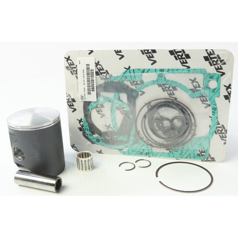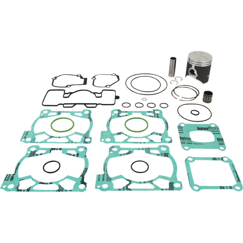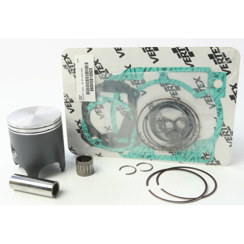 - Top end piston kit includes piston, rings, pins, circlips, top end gaskets, and wrist pin bearing or cam chain where applicable.