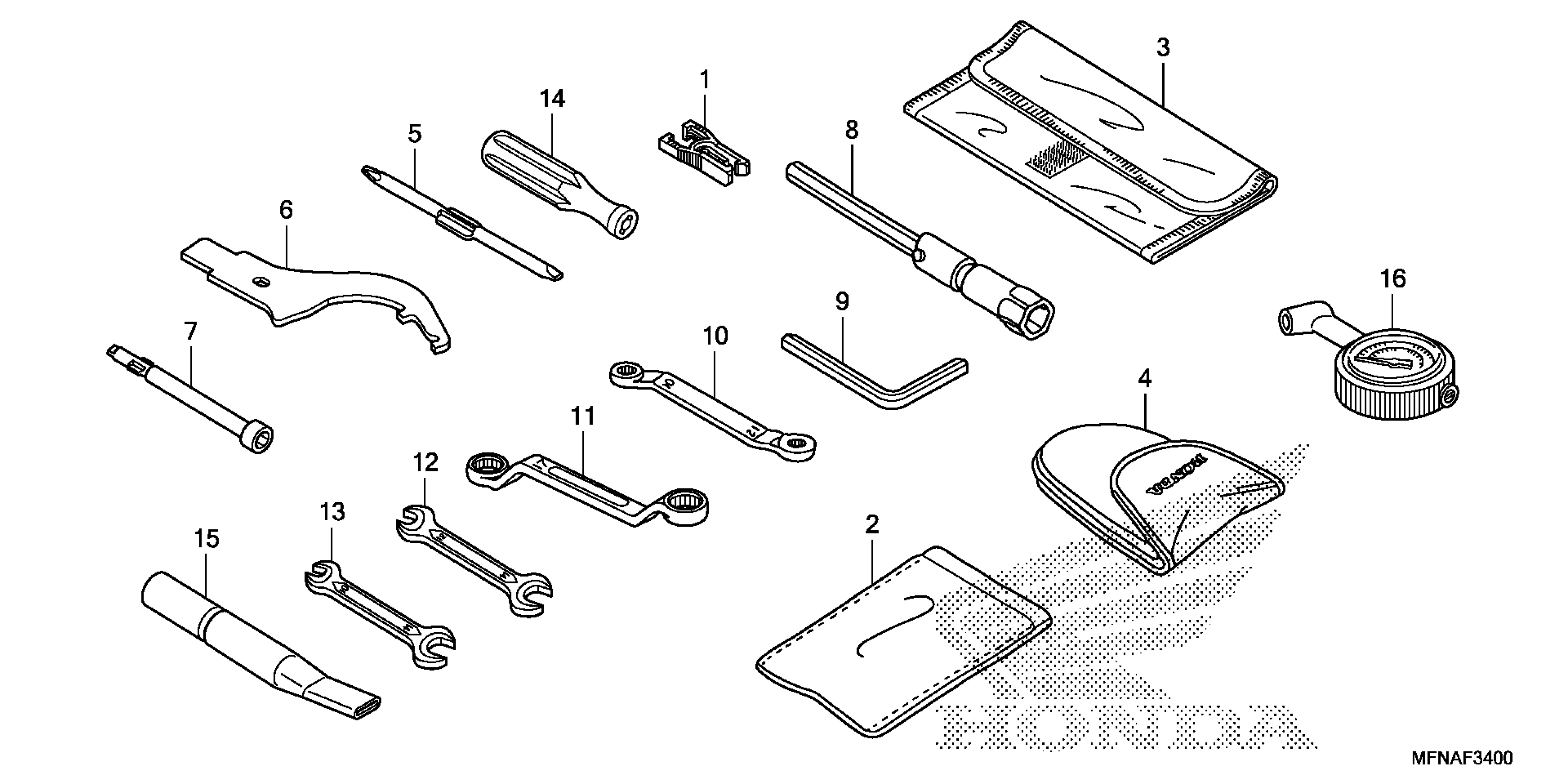 Honda CB1000R4AC (16) MOTORCYCLE, ITA, VIN# ZDCSC601-GF225001 TOOL Diagram