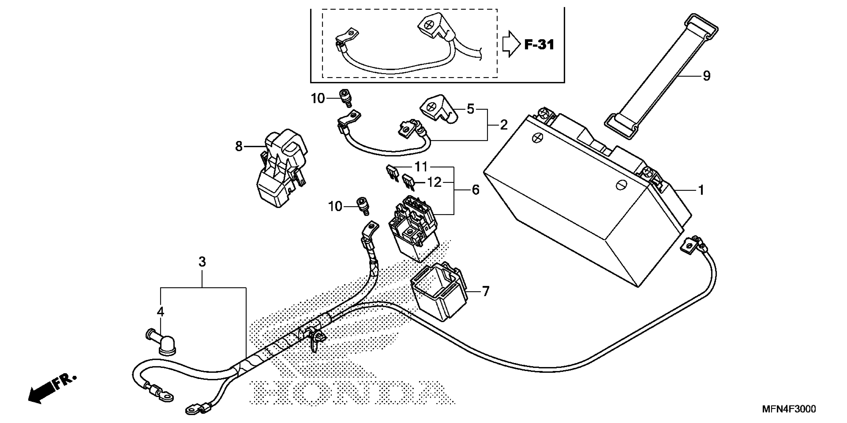 Honda CB1000RA (11) MOTORCYCLE, ITA, VIN# ZDCSC601-BF200001 TO ZDCSC601-BF299999 BATTERY Diagram