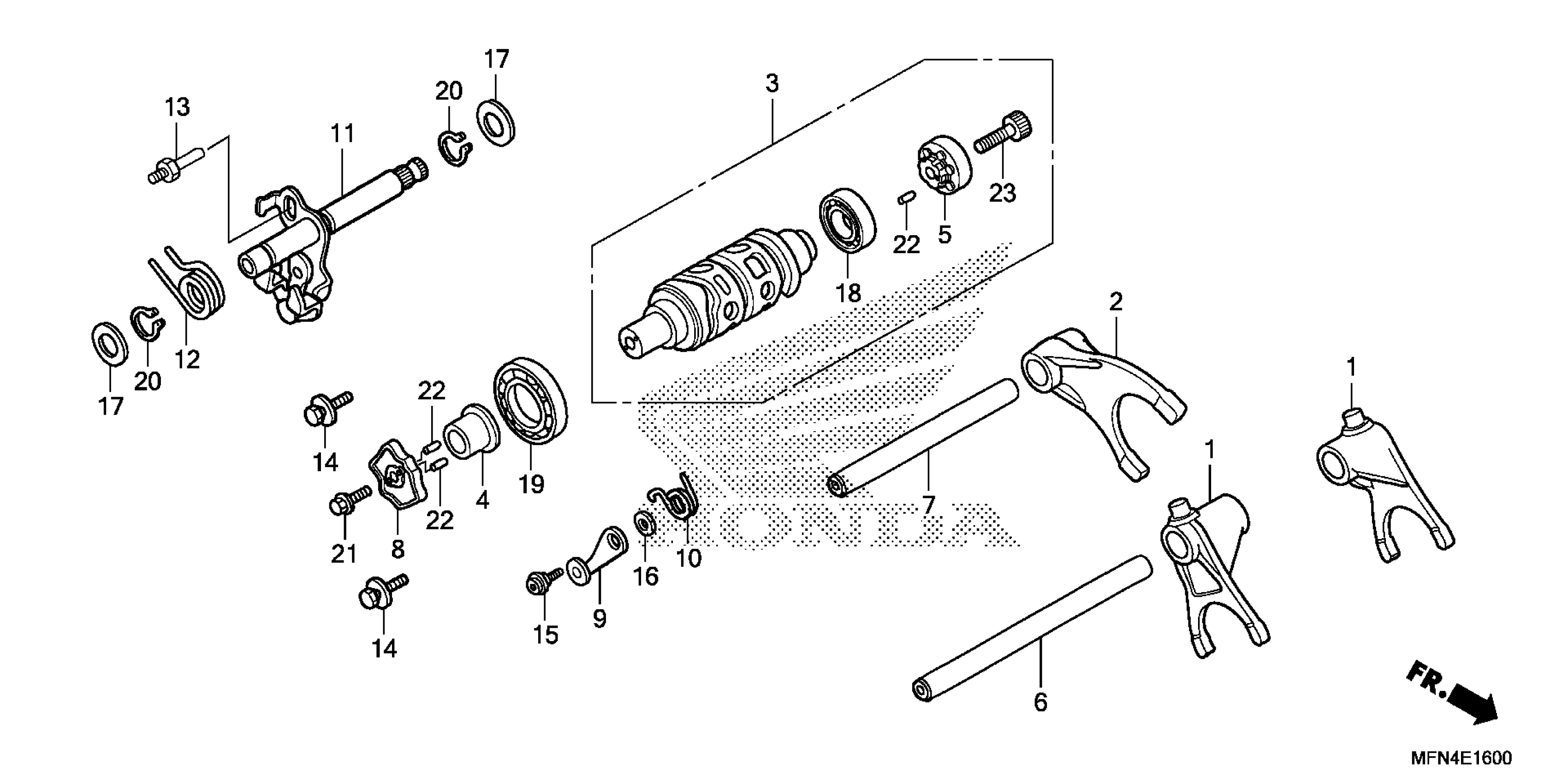 Honda CB1000RA2AC (14) MOTORCYCLE, ITA, VIN# ZDCSC605-EF315001 GEARSHIFT DRUM Diagram