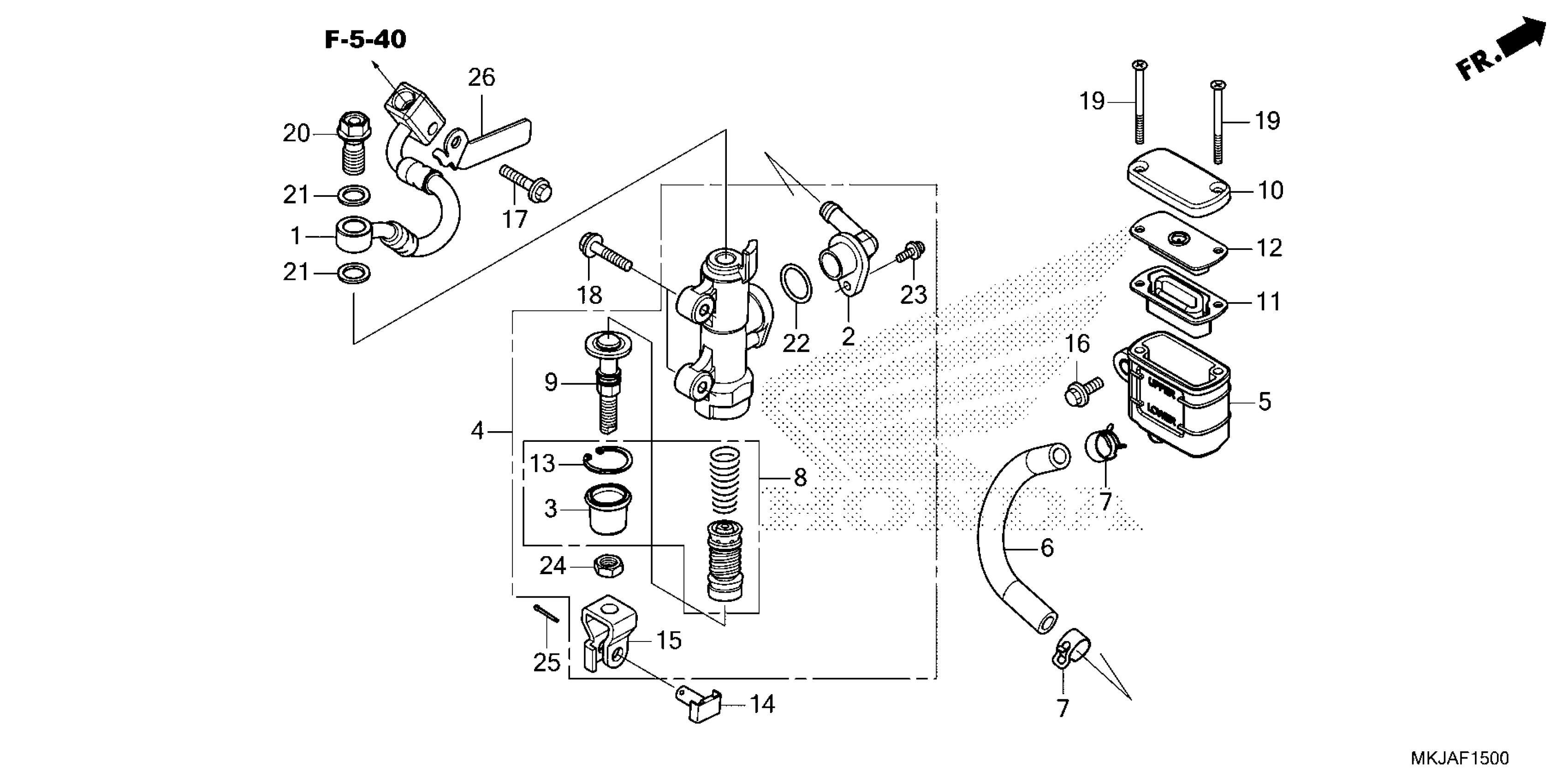 Honda CB1000RA3AC (23) MOTORCYCLE, JPN, VIN# JH2SC801-PK500001 TO JH2SC801-PK599999 REAR BRAKE MASTER CYLINDER Diagram