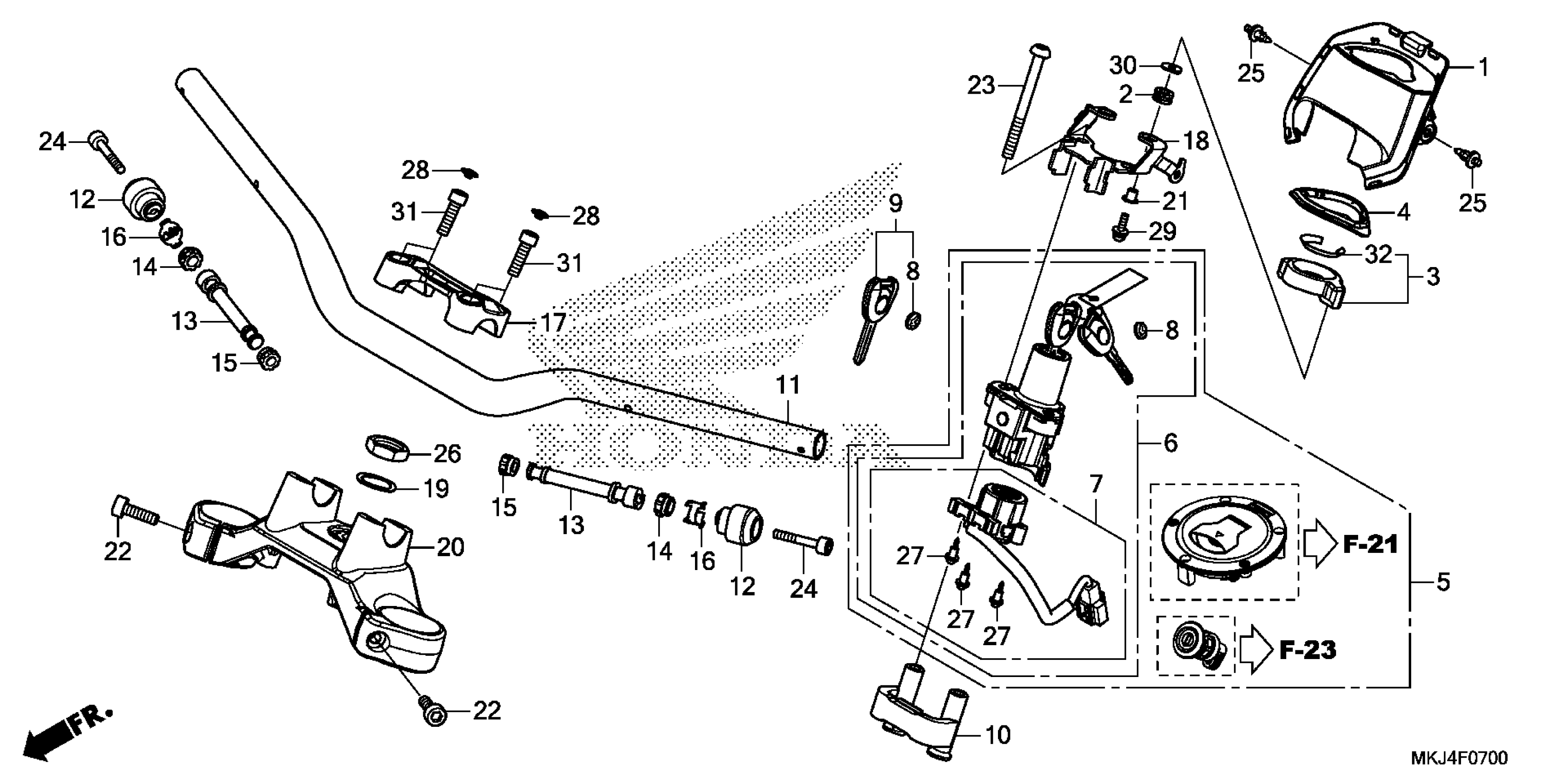 Honda CB1000RAAC (19) MOTORCYCLE, JPN, VIN# JH2SC801-KK100001 TO JH2SC801-KK199999 HANDLEBAR@TOP BRIDGE Diagram