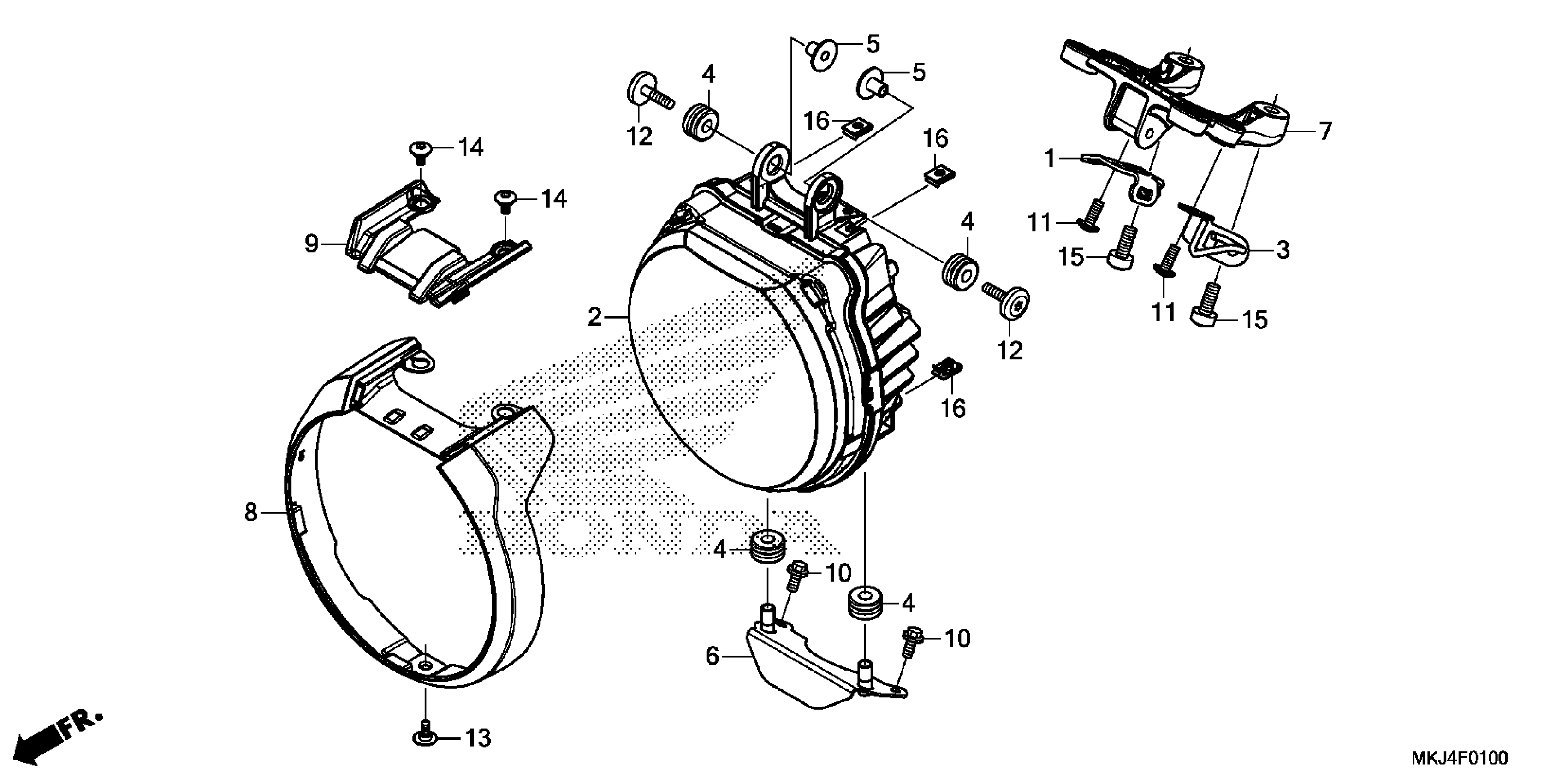 Honda CB1000RAAC (19) MOTORCYCLE, JPN, VIN# JH2SC801-KK100001 TO JH2SC801-KK199999 HEADLIGHT Diagram