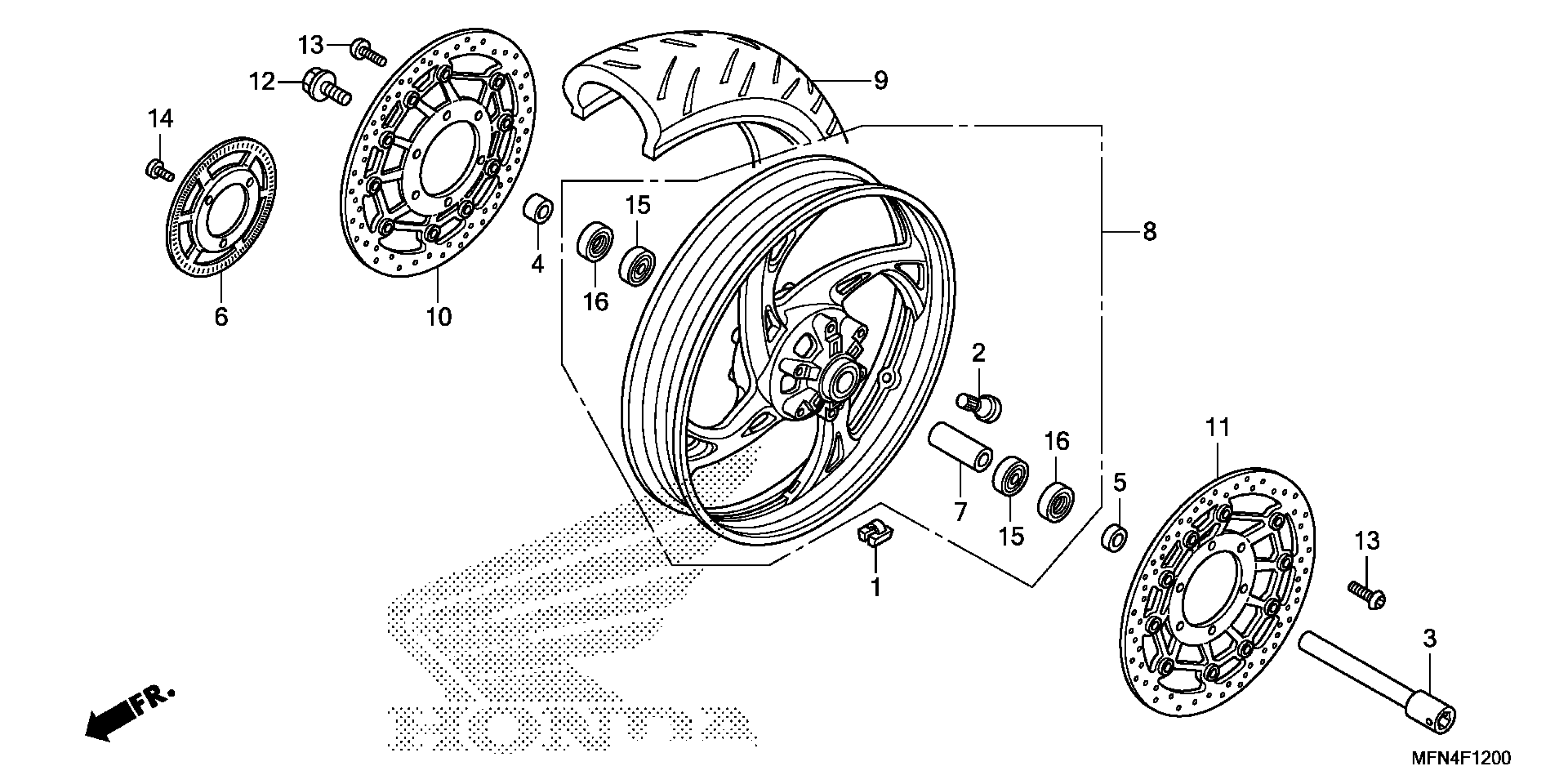 Honda CB1000RAC (14) MOTORCYCLE, ITA, VIN# ZDCSC601-EF215001 FRONT WHEEL Diagram