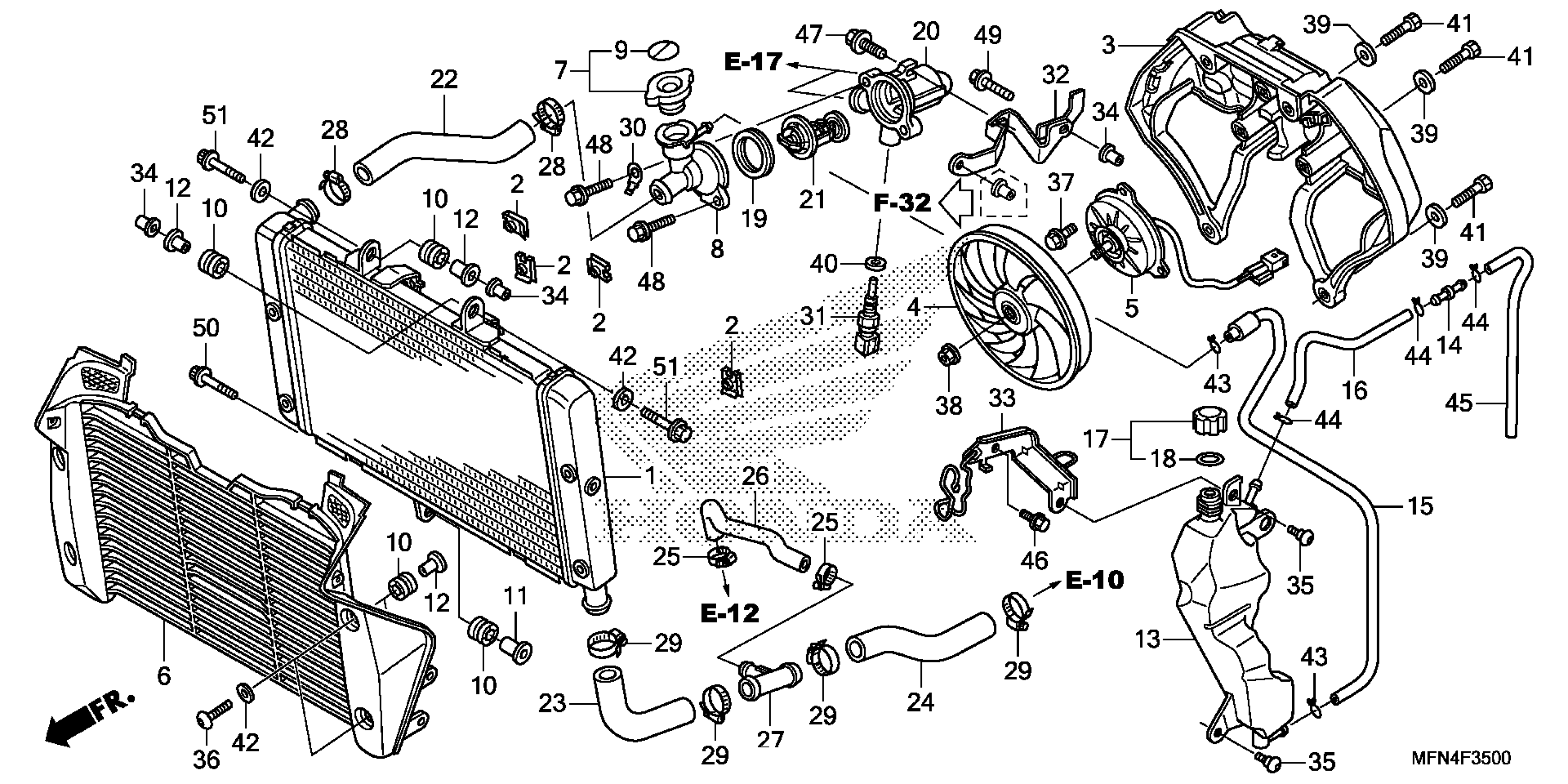 Honda CB1000RAC (14) MOTORCYCLE, ITA, VIN# ZDCSC601-EF215001 RADIATOR Diagram