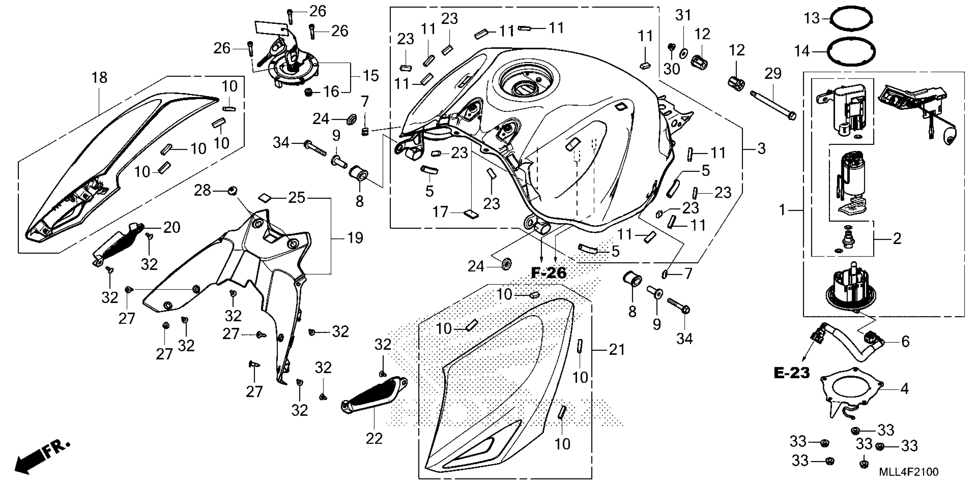 Honda CB1000SPAC (25) MOTORCYCLE, JPN, VIN# JH2SC861-SK000001 TO JH2SC861-SK099999 FUEL TANK@FUEL PUMP Diagram