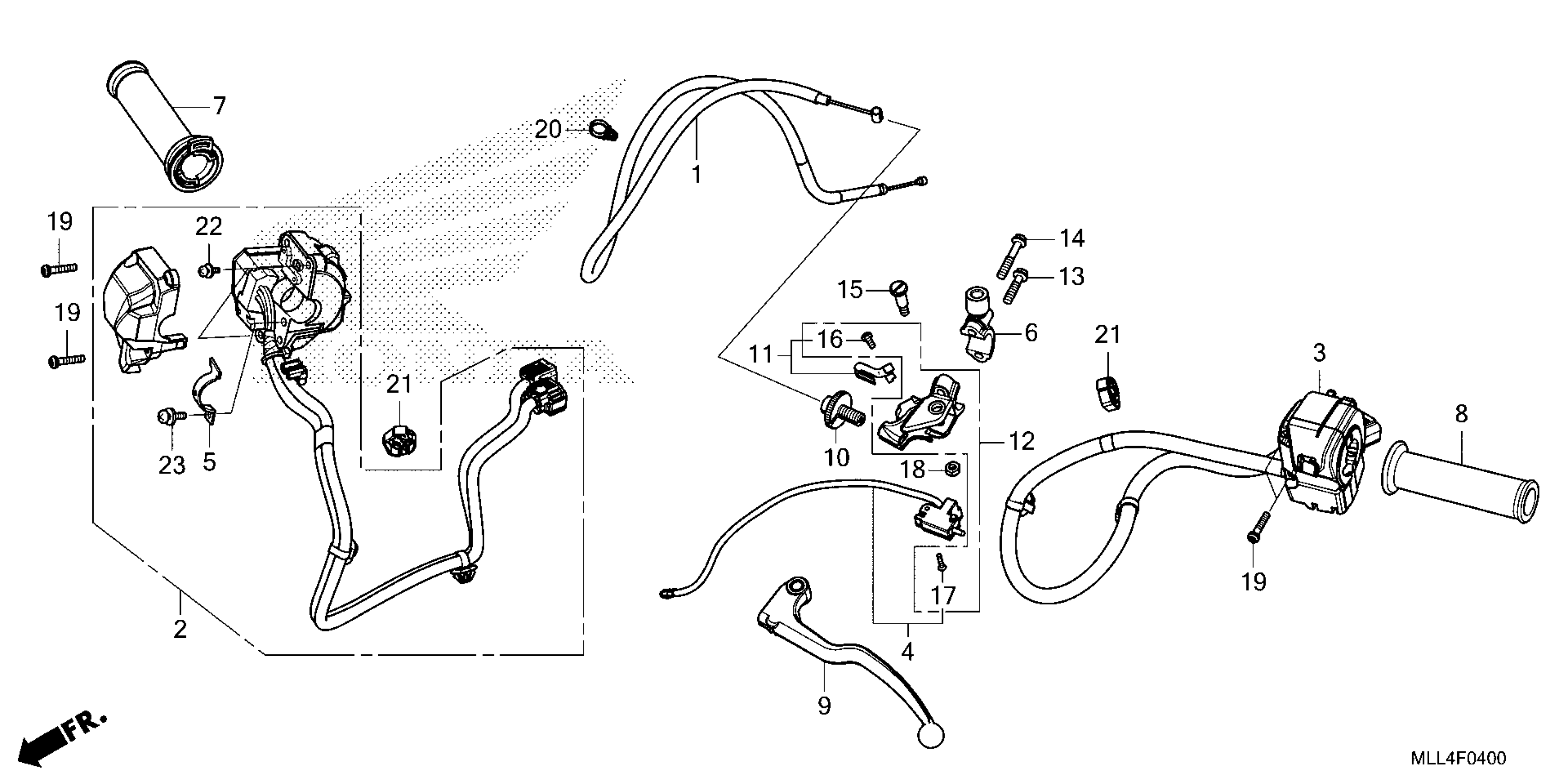Honda CB1000SPAC (25) MOTORCYCLE, JPN, VIN# JH2SC861-SK000001 TO JH2SC861-SK099999 HANDLE LEVER@SWITCH@CABLE Diagram