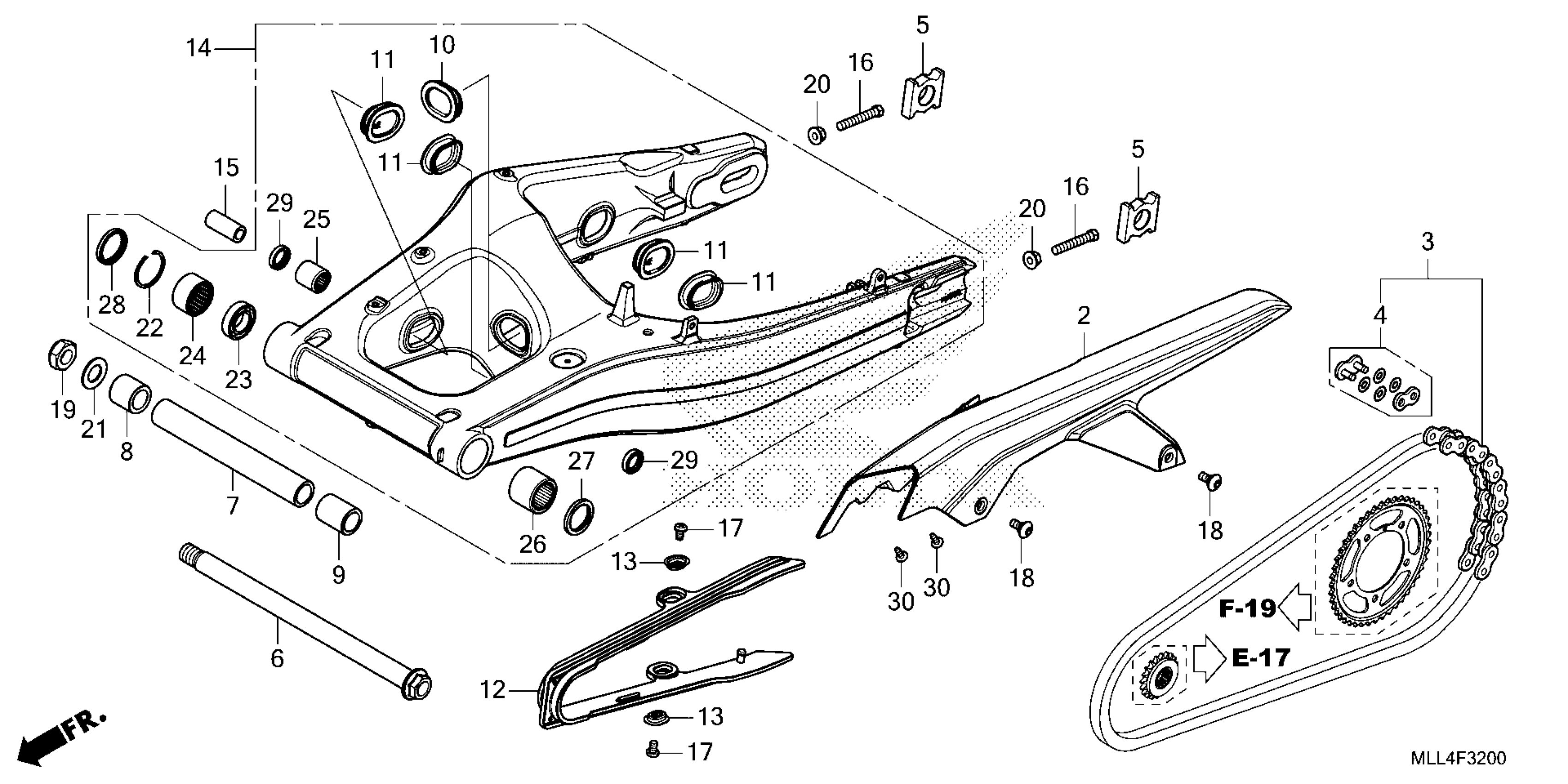 Honda CB1000SPAC (25) MOTORCYCLE, JPN, VIN# JH2SC861-SK000001 TO JH2SC861-SK099999 SWINGARM Diagram