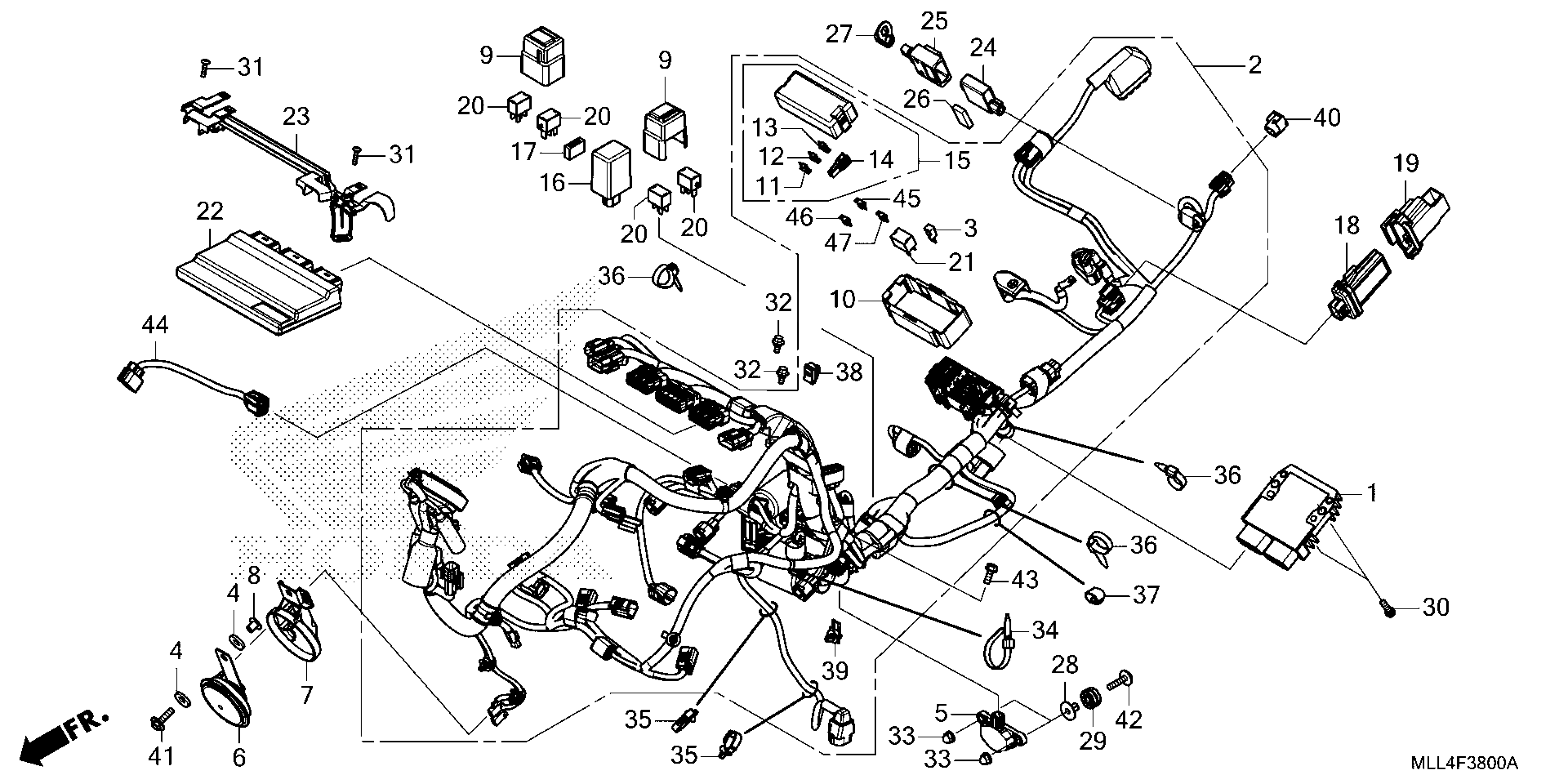 Honda CB1000SPAC (25) MOTORCYCLE, JPN, VIN# JH2SC861-SK000001 TO JH2SC861-SK099999 WIRE HARNESS Diagram