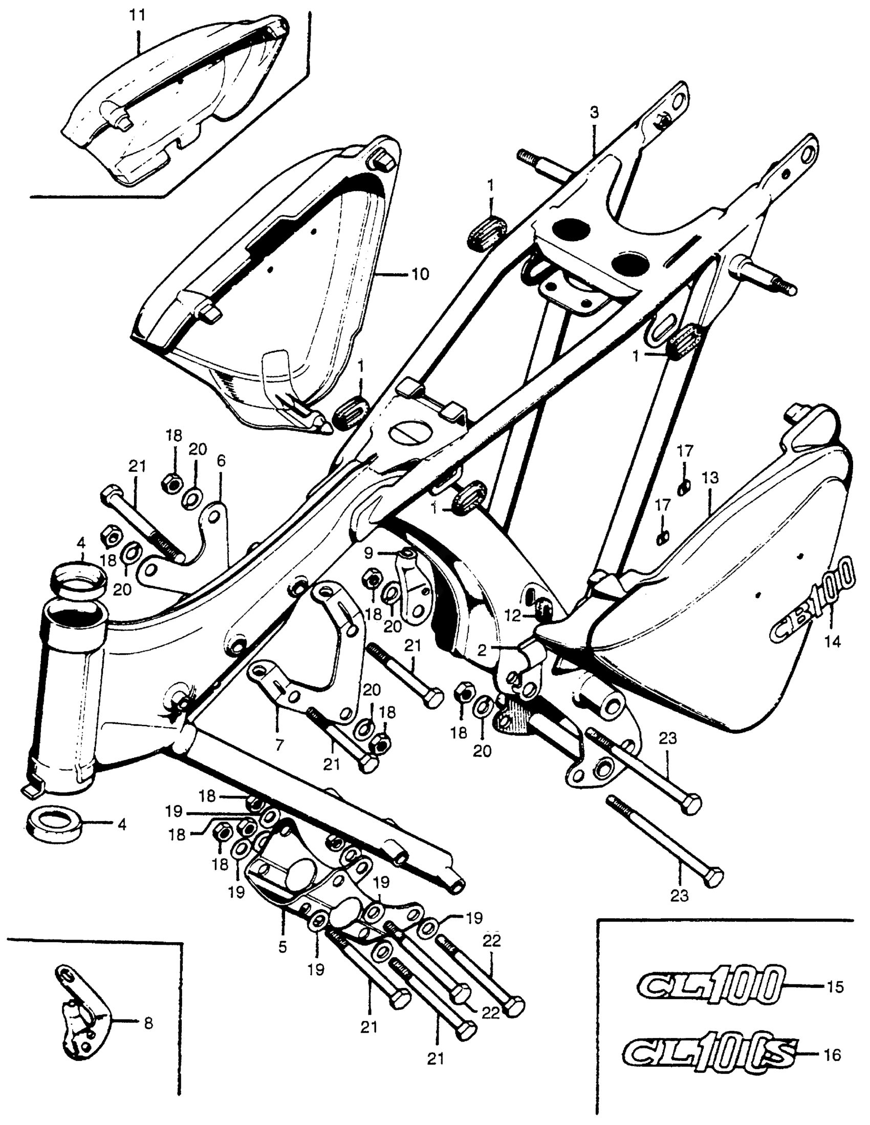 Honda CB100K1A MOTORCYCLE, JPN, VIN# CB100-200001 FRAME + SIDE COVER Diagram