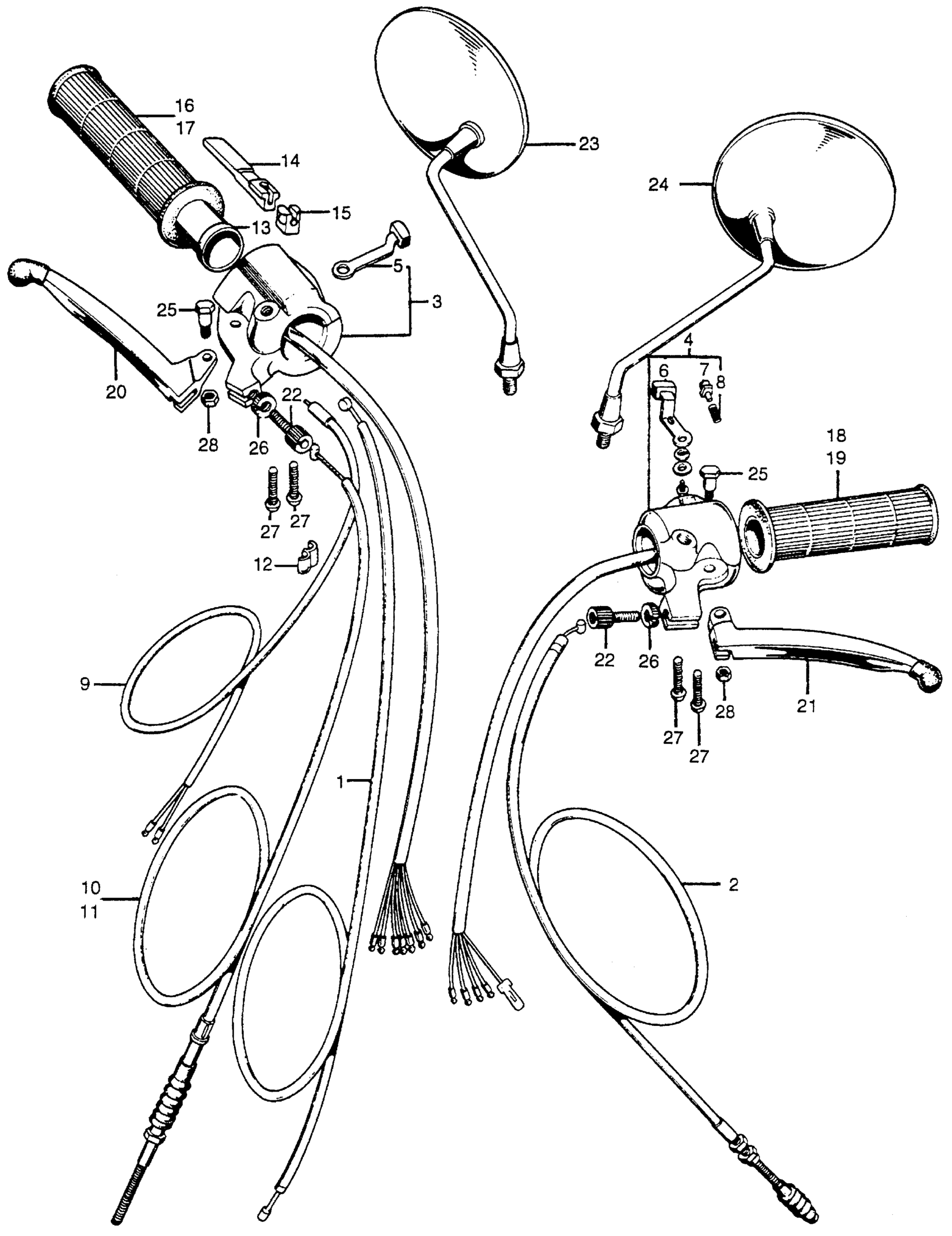 Honda CB100K1A MOTORCYCLE, JPN, VIN# CB100-200001 TURN SIGNAL + LIGHTING SWITCH + CABLE Diagram