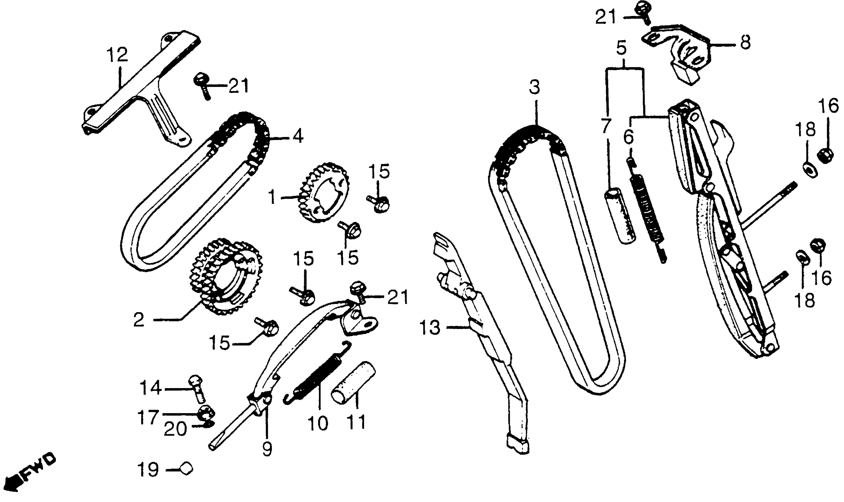 Honda CB1100FA (83) SUPER SPORT, JPN, VIN# JH2SC110-DM000001 CAM CHAIN + TENSIONER Diagram