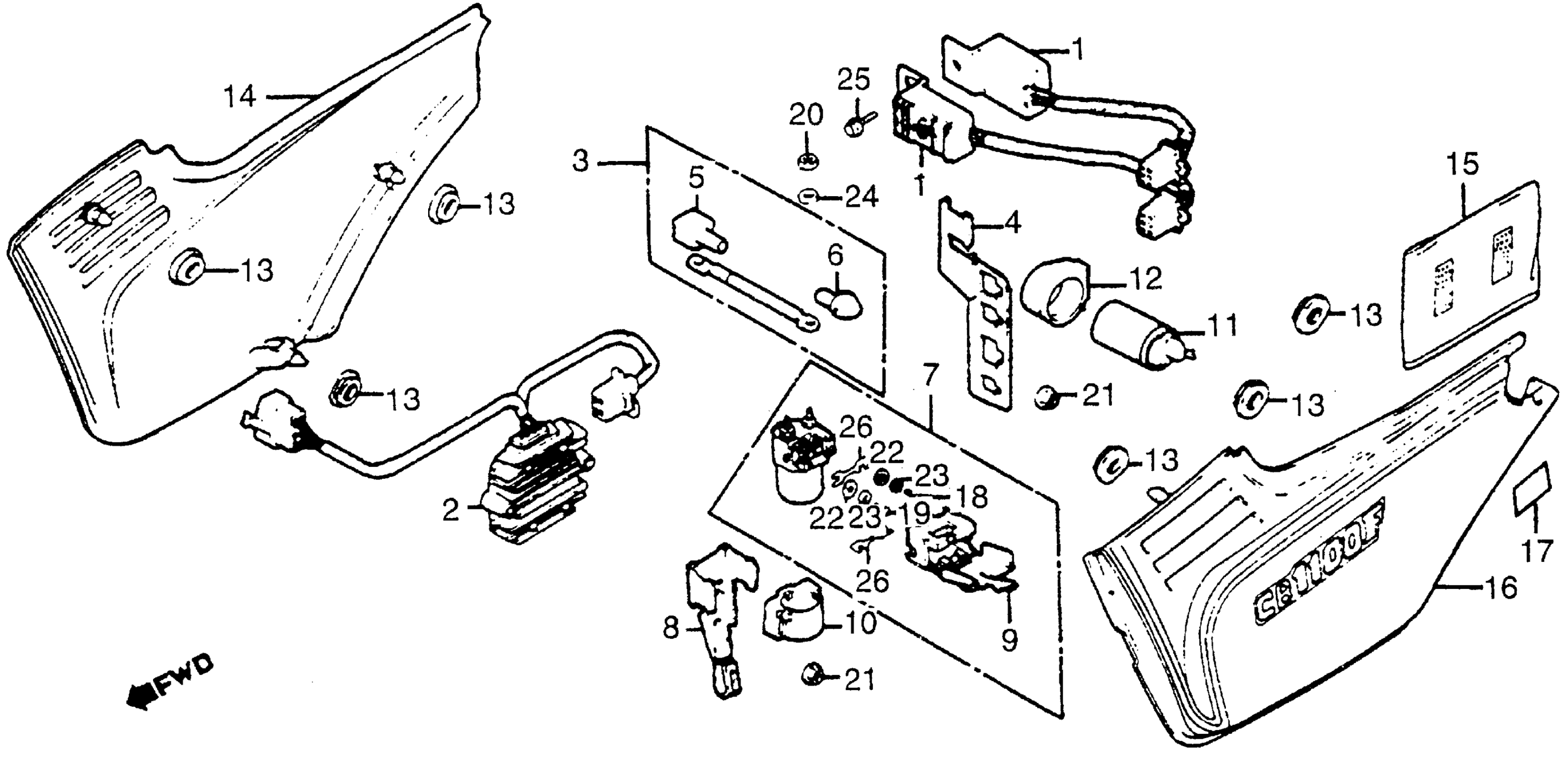 Honda CB1100FA (83) SUPER SPORT, JPN, VIN# JH2SC110-DM000001 SIDE COVER + SPARK UNIT + RECTIFIER Diagram