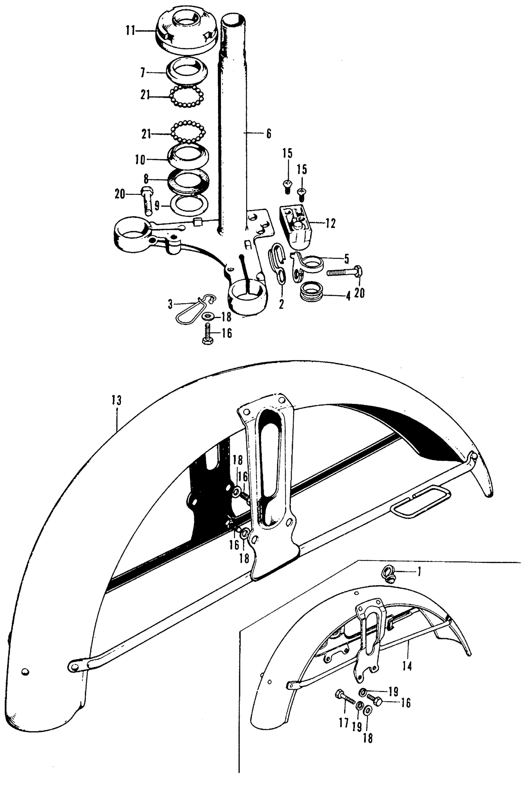 Honda CB125S1A MOTORCYCLE, JPN, VIN# CB125S-1100001 STEERING STEM + FRONT FENDER Diagram
